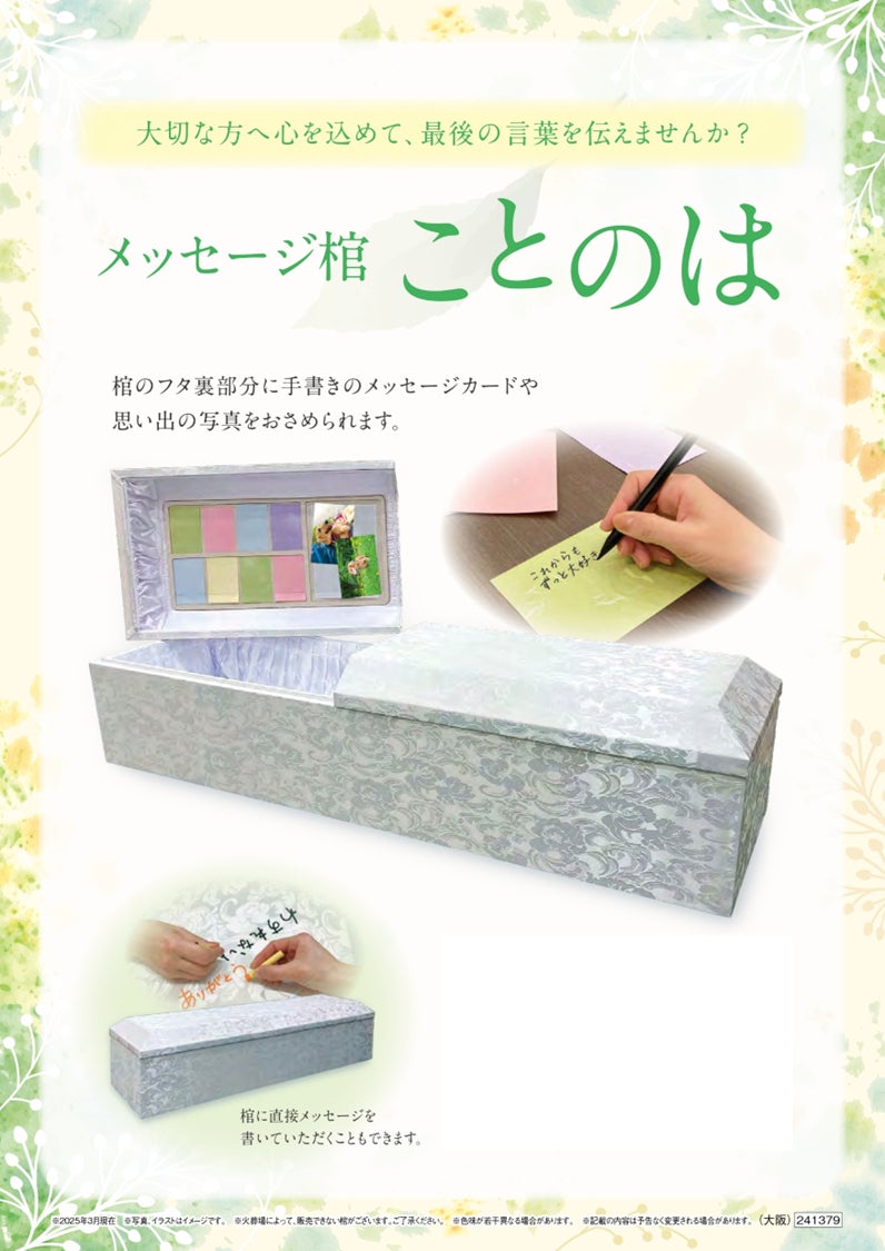 全国どこでも安心・安全に、そして後悔のないお葬式やライフエンディングを迎えられる世の中を目指し、トータルサポートを提供する、燦ホールディングス株式会社(東京本社:東京都港区、大阪本社:大阪市北区、代表取締役社長:播島聡、東証プライム:9628)は、グループ会社の株式会社公益社より大切な方へ心を込めて最後の言葉を伝える棺『メッセージ棺 ことのは』を提供開始しました。