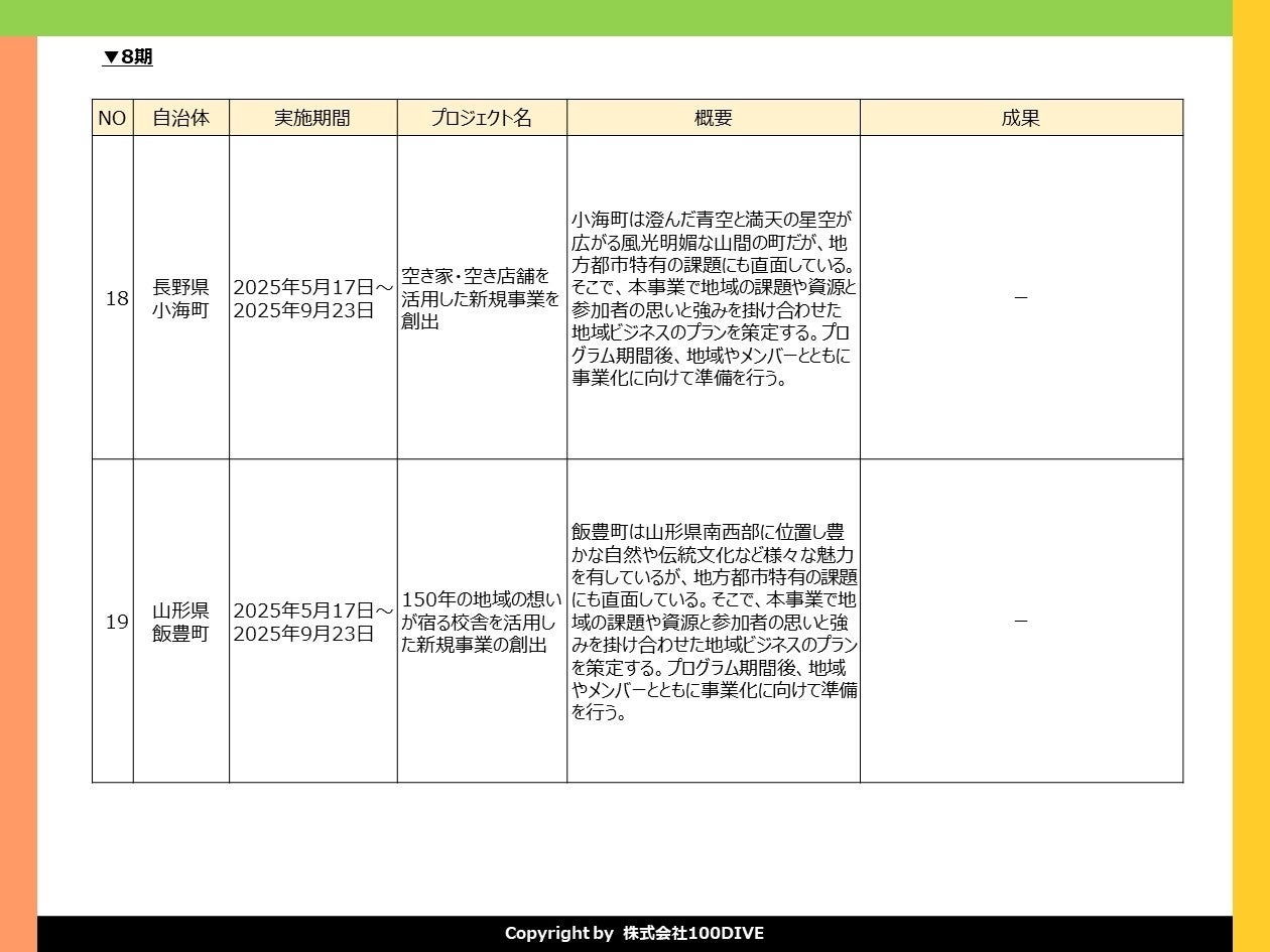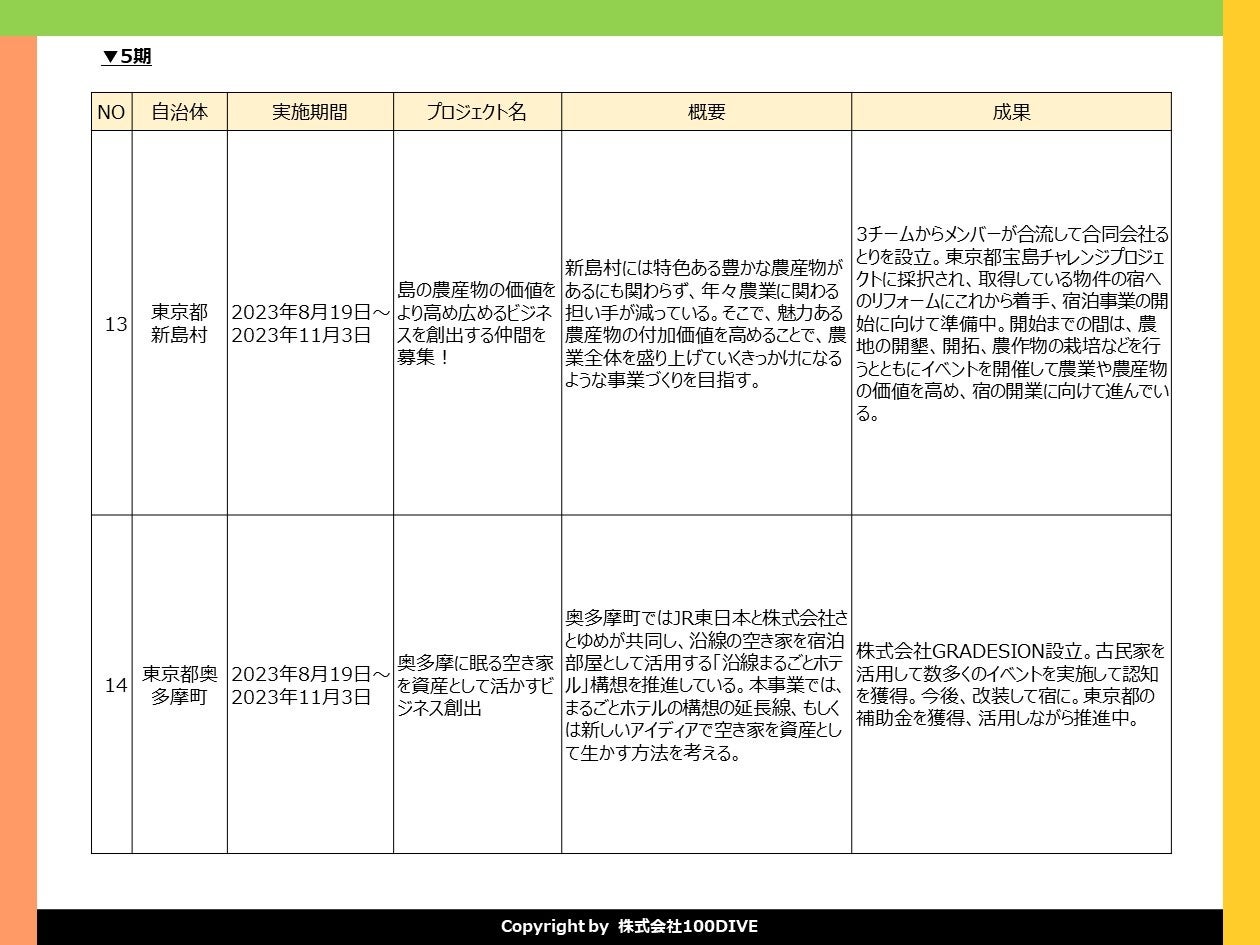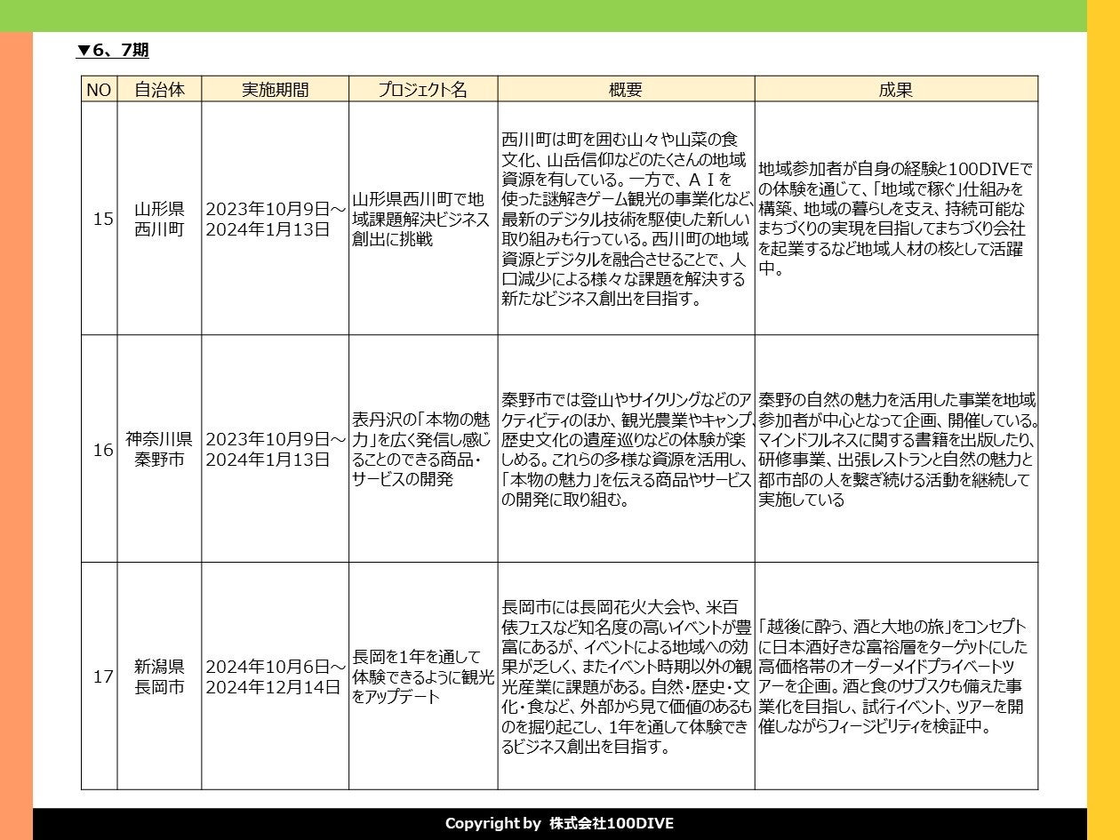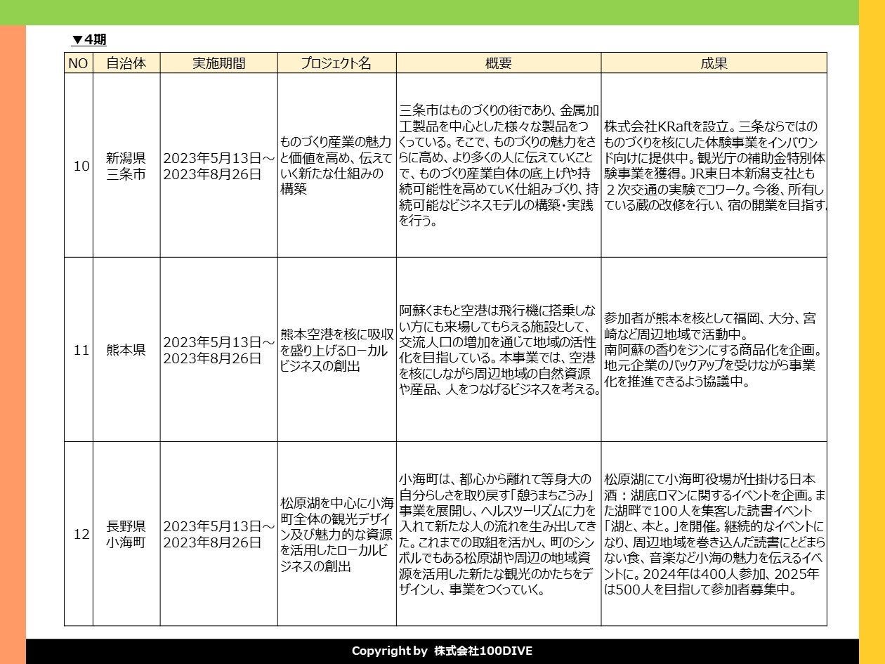 ※「100DIVE」とは、意志ある人を起点に、地域の未来を考え、ローカルビジネスを生み出す実践型ププロジェクトです。