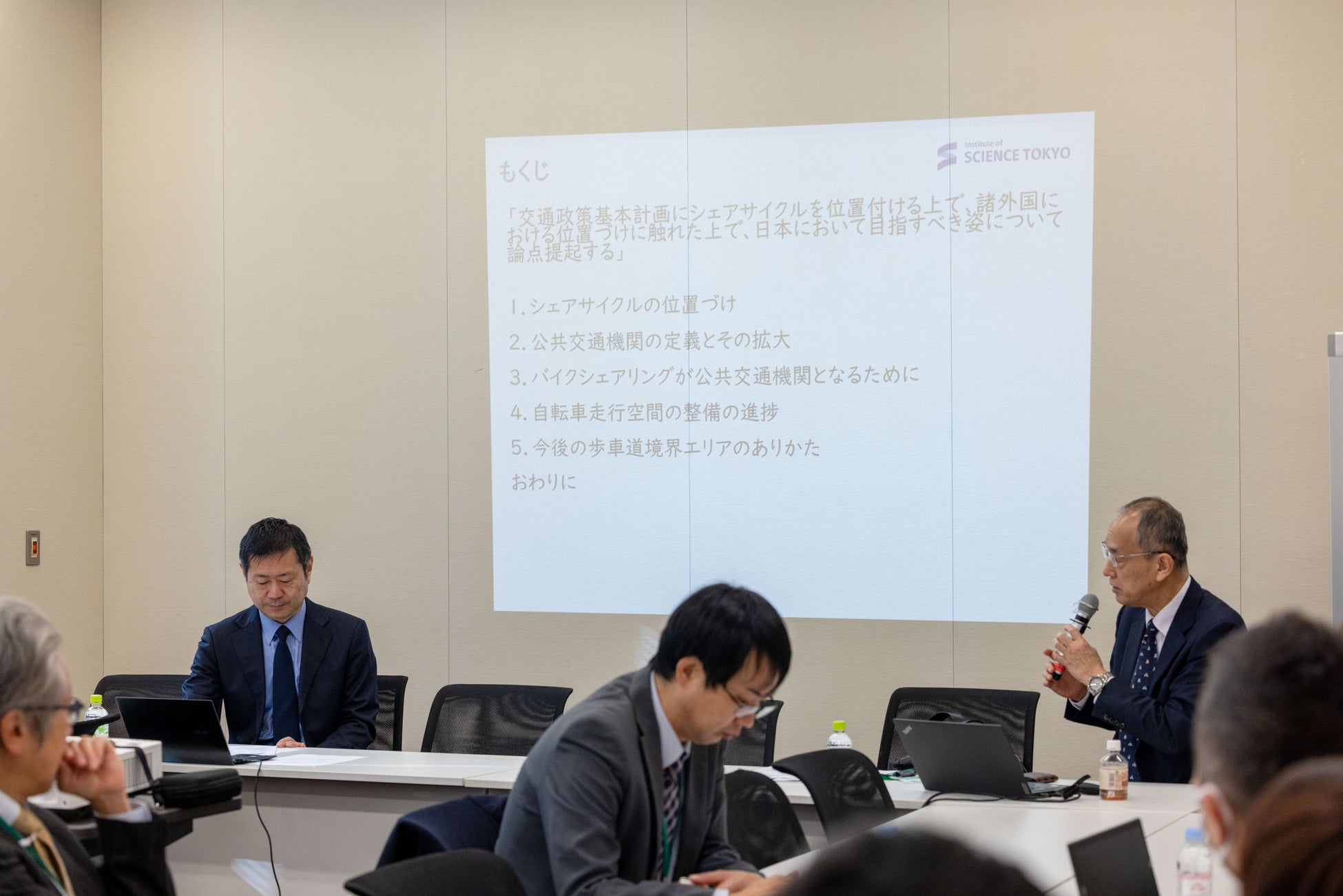 「日本シェアサイクル政策研究会 政策課題WG」は、(一財)運輸総合研究所 屋井 鉄雄 所長とともに、公共交通とシェアサイクルをテーマに議論を実施
