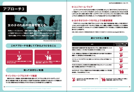 さらに、スポーツ現場におけるジェンダー平等推進のための工夫やヒントをまとめた「女の子のスポーツ参加を促す指導者ガイド」も発表しました。本ガイドはスポーツ現場からのニーズに応えるために制作され、女の子が安心して安全にスポーツに参加でき、スポーツからあらゆるものを得られるように、指導者が知っておくべき「知識」と、その知識をベースにどのような「意識」で指導にあたることが重要なのかを7つのアプローチにまとめています。より多くの子どもたちのスポーツ参加を促すため、株式会社読売巨人軍、公益財団法人日本バスケットボール協会をはじめ、国内のスポーツ・女性分野で活動する17団体(10月20日時点)から賛同を得ています。