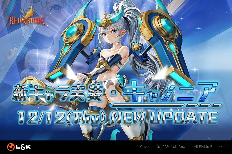 MMORPG「RED STONE」の開発元の「L&K Co., Ltd. 」の日本法人である「株式会社L&K Japan」(代表取締役社長:南澤元、以下L&K)は、12月12日(木)に「RED STONE」の26番目のキャラクターである「キャノニア」の実装を含む大型アップデートを実施しました。