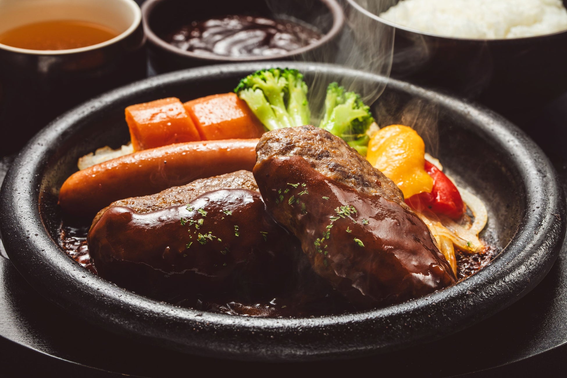 肉の旨みをぎゅっと閉じ込めたハンバーグに、濃厚でコクのあるデミグラスソースをたっぷりかけた一品。ジュワッとあふれる肉汁と香ばしいソースが食欲をそそります。