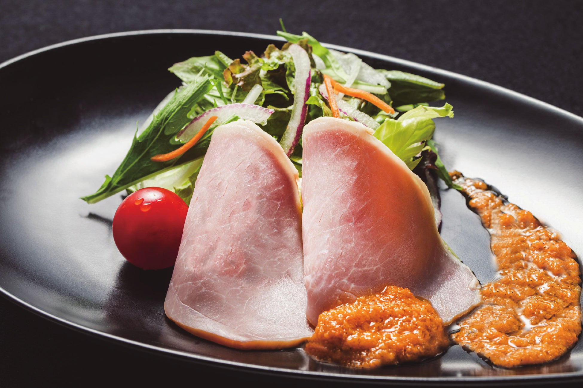 香り豊かな自家製ロースハムをふんだんに使用し、シャキッと新鮮な野菜とともに彩り豊かに盛り付けました。