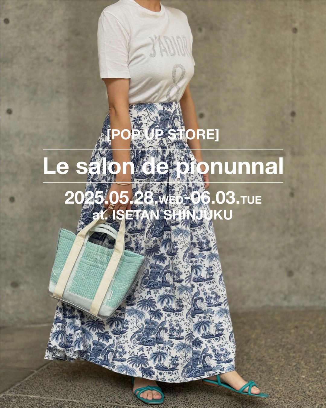 伊勢丹新宿店で約1年3ヶ月ぶりの開催となる今回は、ブランドの人気定番コレクションに加え、初登場となるPVC素材のバッグ2型を先行販売。雨の日にもアクティブな日常にもフィットする3WAYで使える“進化系プールバッグ”が登場します。また、会期中にご購入いただいたお客様には、数量限定でスペシャルなノベルティをご用意。pionunnalの世界観に直接触れていただける、特別な機会となっております。