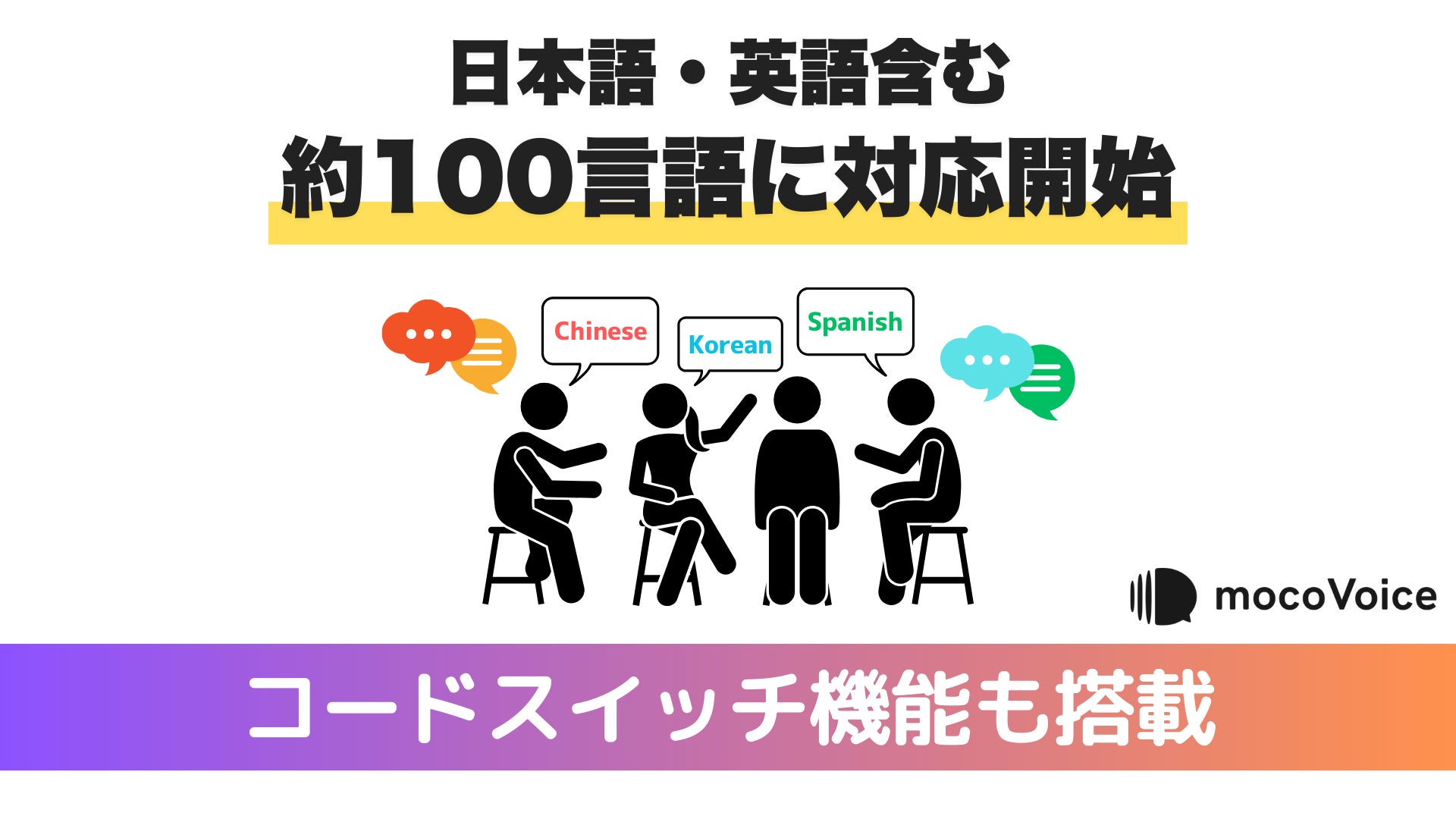 mocomoco株式会社の提供する高性能音声認識AI「mocoVoice API」において、新たに99種類の言語への対応を開始したことをお知らせいたします。これまでの日本語・英語対応に加え、韓国語・中国語・スペイン語・ドイツ語・フランス語など複数の主要言語を含め、世界各地の言語への対応が可能となりました。