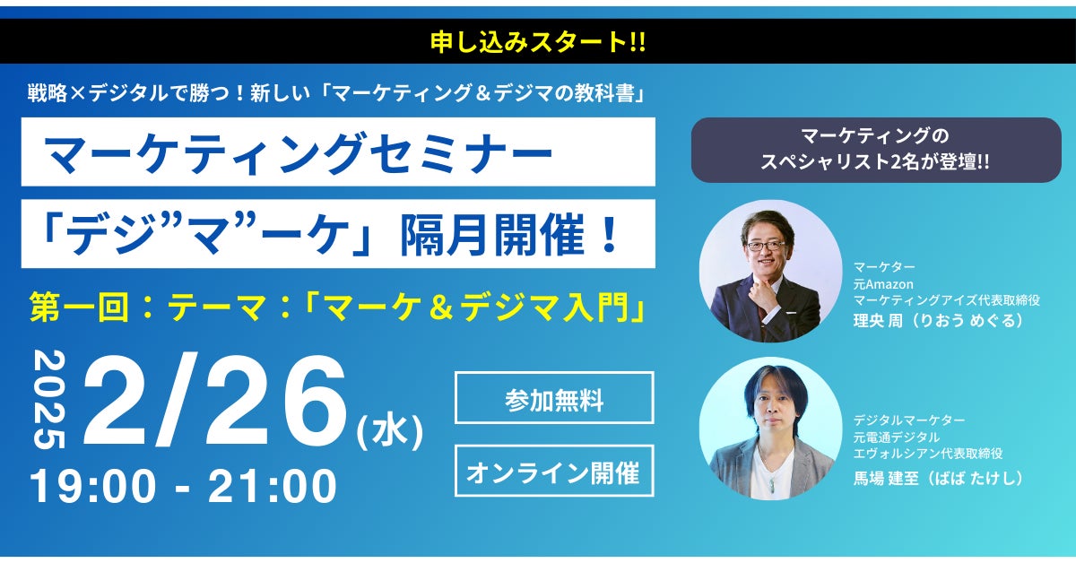【隔月開催!無料ウェビナー】第一弾は2月26日!理央周氏×馬場建至氏が送る共同セミナーStrategic Digital Marketing「デジ”マ”ーケ」が始動!