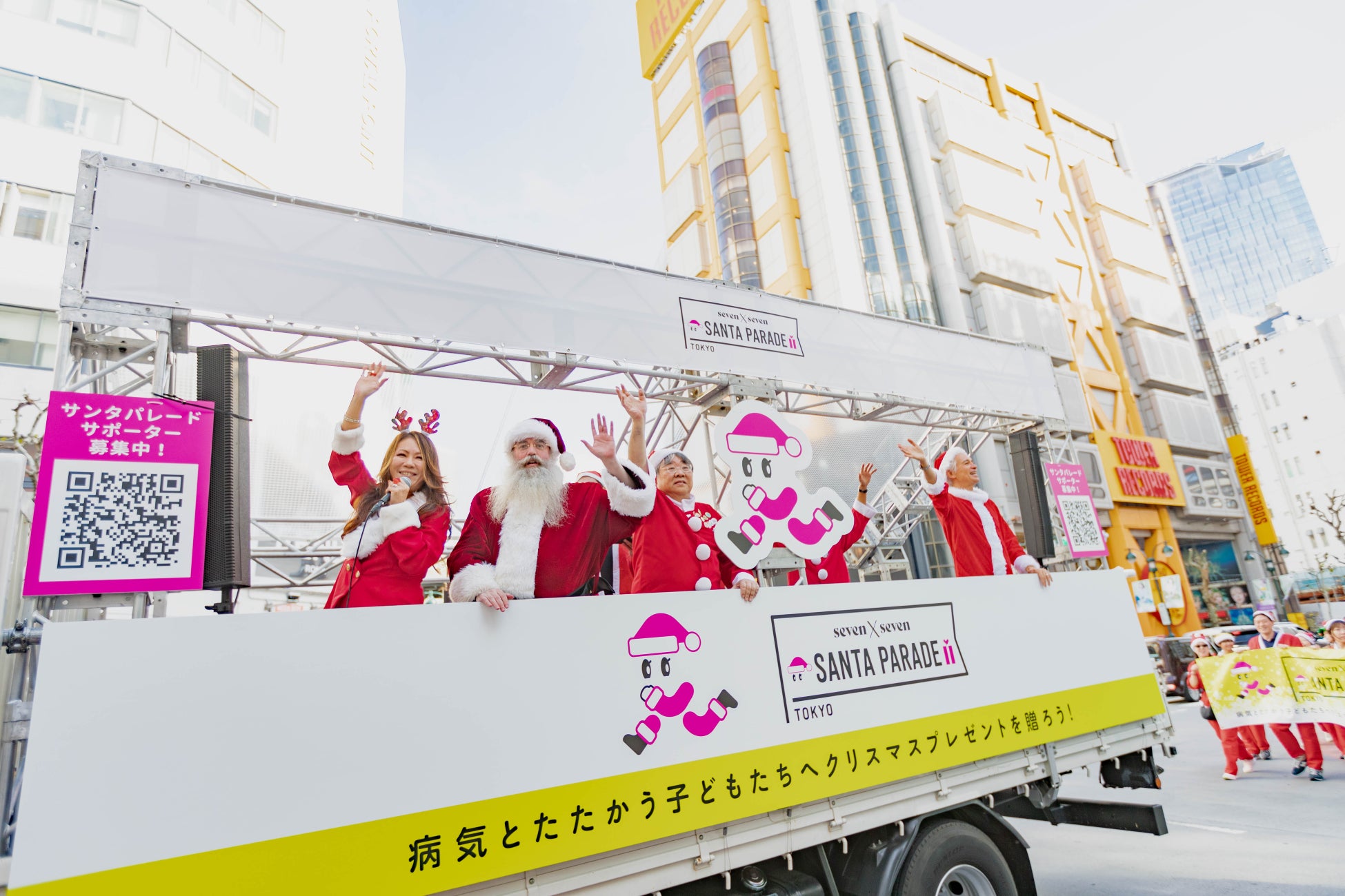 イギリスを始め、世界各国で実施されている冬の風物詩であり、日本では 2009 年に大阪でスタートし、そして2018年12月、東京・明治神宮外苑に初上陸しました。7回目を迎える「サンタパレード東京」では今回、原宿駅から渋谷駅までの公道2.5kmをパレード形式で、病気とたたかう子どもたちに想いを寄せながら、そして、クリスマス色に染まる街の景色を楽しみながら、サンタクロース姿でゆっくりと ウォーキングしました。会場には、スペシャルアンバサダーとして大黒摩季さん、マーク・パンサーさんら著名人も登場しました。
