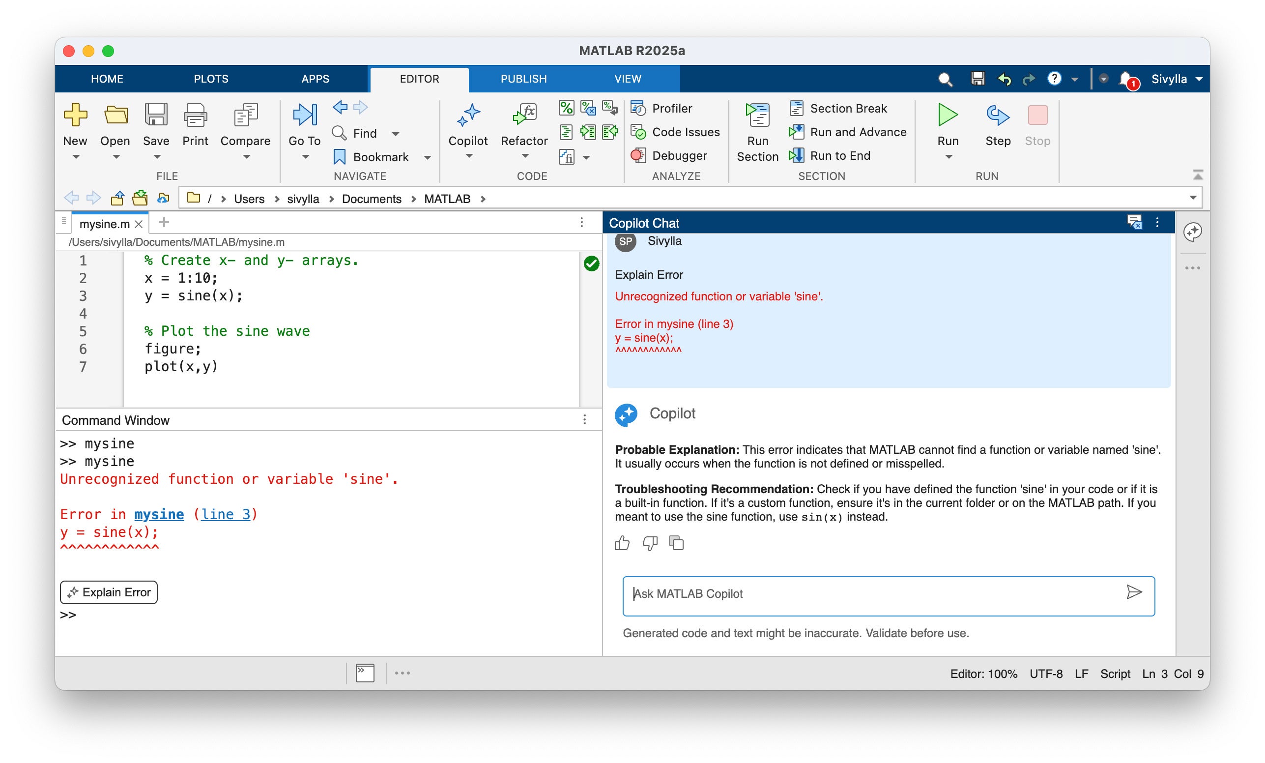 NATICK, MA – (2025 年 10 月 7 日) - MathWorks は、エンジニア、科学者、研究者の生産性を高め、開発を加速させる MATLAB 向け生成 AI アシスタント「MATLAB Copilot」の提供開始を発表しました。最新の MATLAB および Simulink Release 2025b (R2025b) で利用可能なこの新製品は、MATLAB 環境でのコーディング、デバッグ、学習を効率化するよう設計されています。
