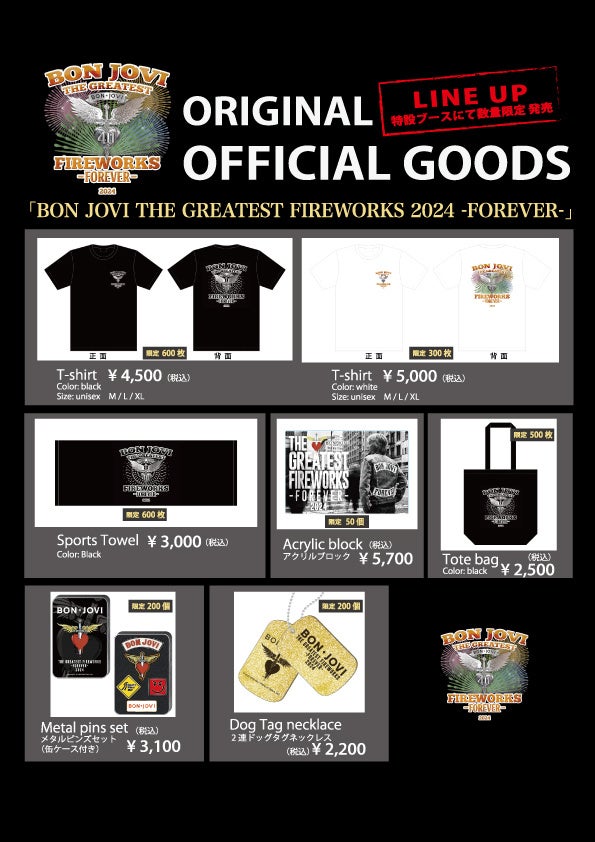 “ボン・ジョヴィ花火”ニュース「BON JOVI THE GREATEST FIREWORKS 2024 -FOREVER- 」一般発売スタート!数量限定オフィシャルグッズ 第1弾発表!