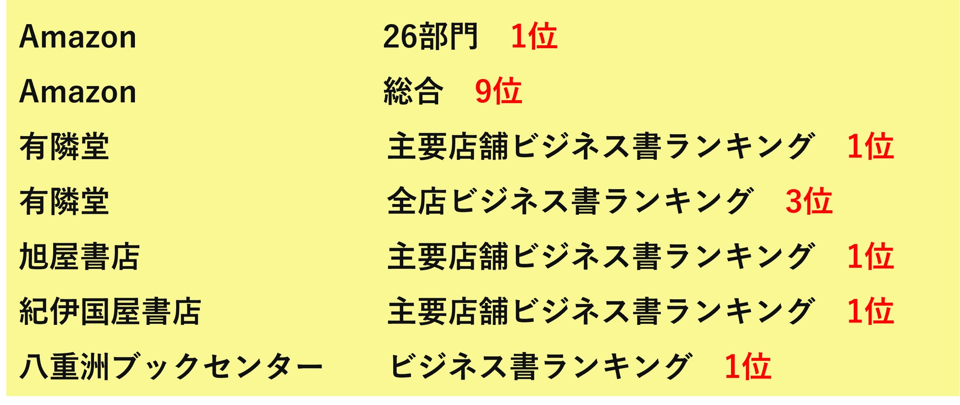 全国30店舗以上の書店・複数の部門で1位を獲得