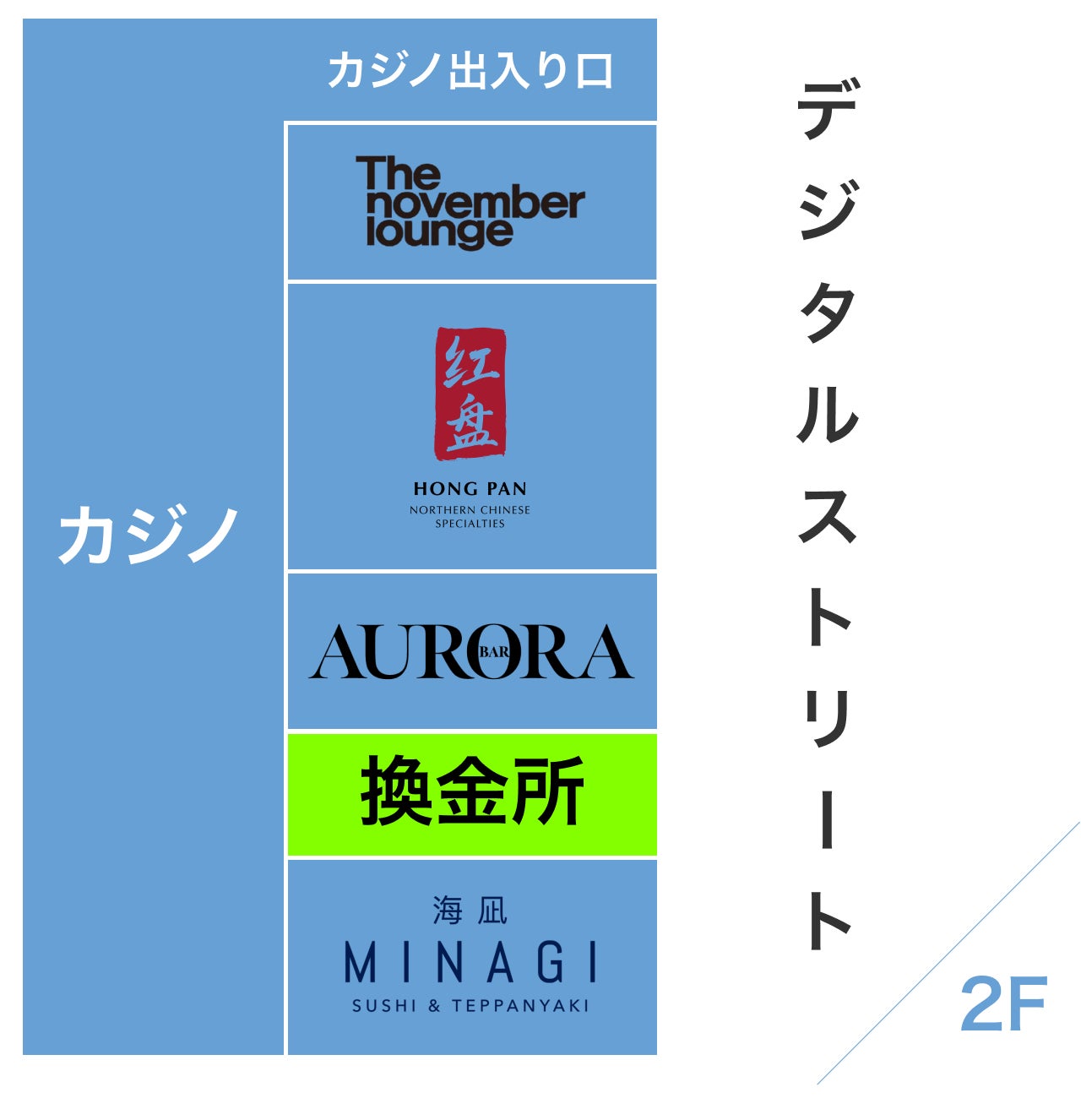 ■場所:INSPIREカジノ前デジタルストリートに面する「中華レストランホンパン」と「日本食レストランミナギ」の間にございます。