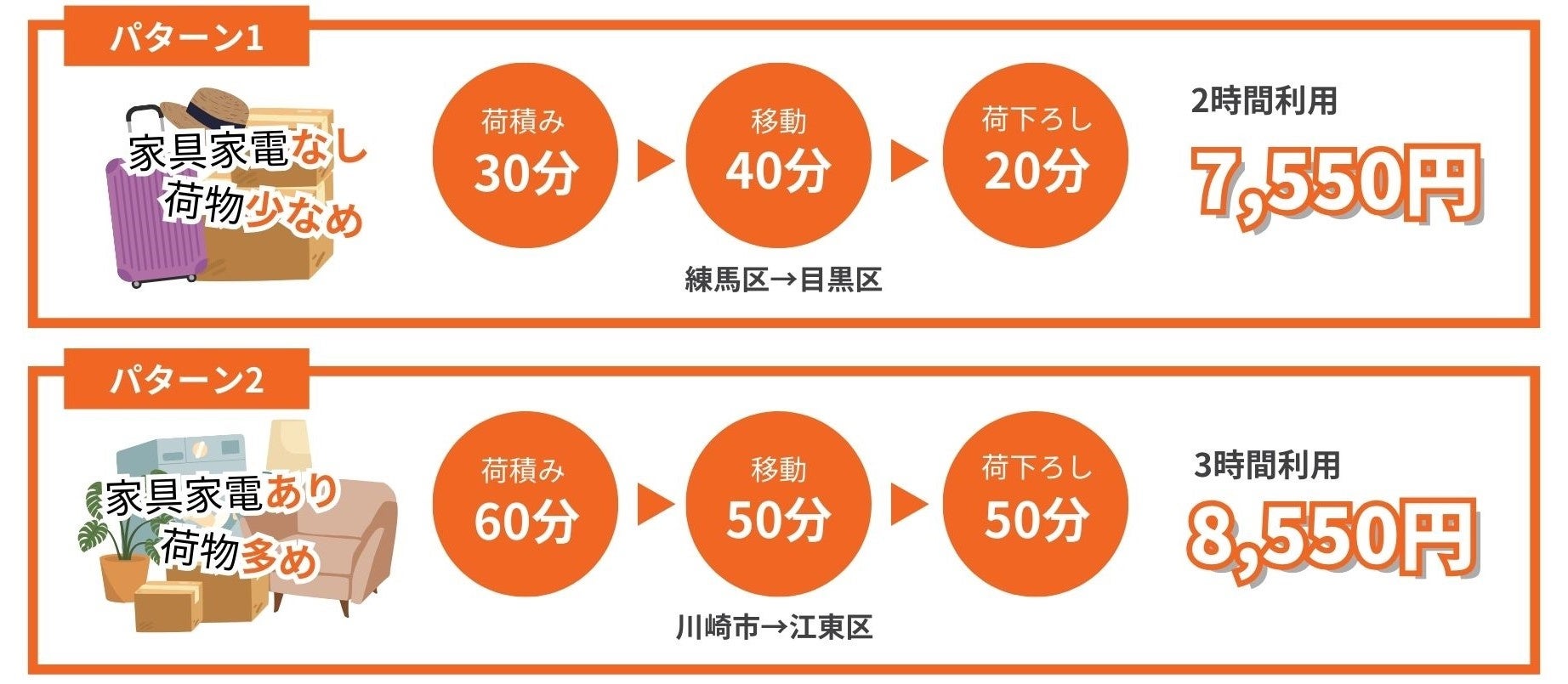 料金は時間制で、2時間7,550円(税込)~。単身世帯で近距離の引っ越しを手軽に且つスピーディーにしたい方に最適です。