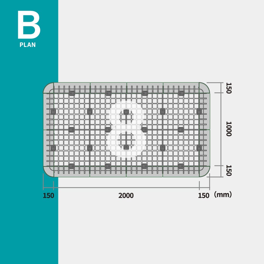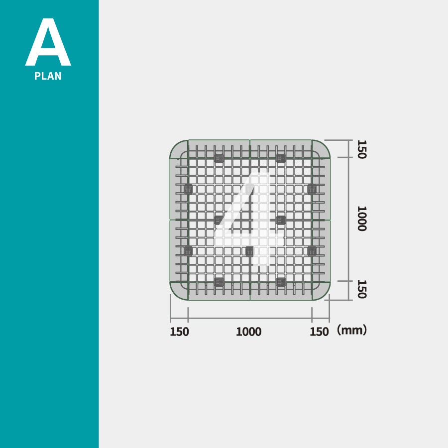 500mm四方の本体ベースと構成パーツを組み合わせて、お好きなサイズや形状で設置できます。ご利用シーンに合わせて繰り返し使える、SDGsを意識したエコロジカルな設計です。