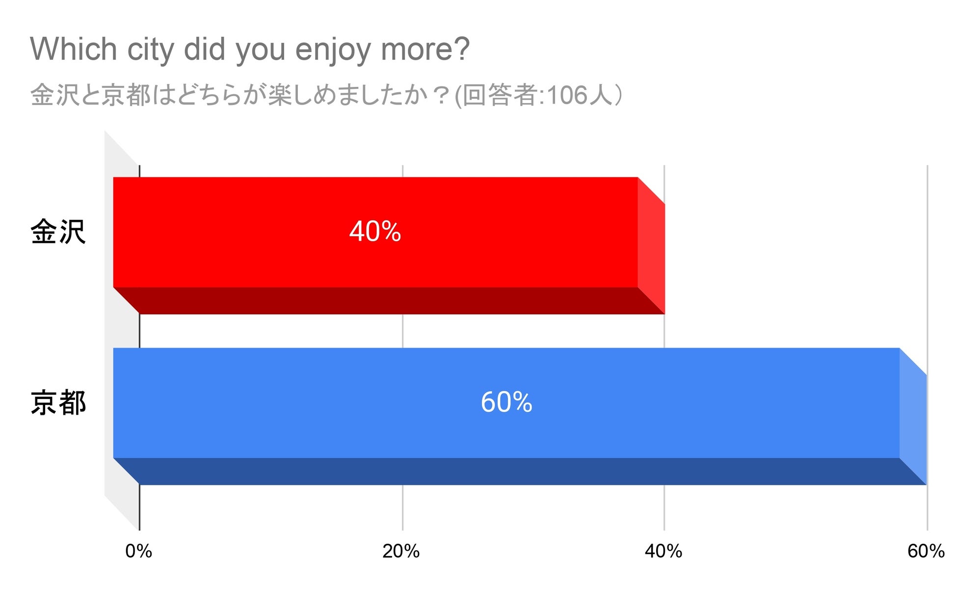 アンケートの調査結果は、「京都」と回答したユーザーが60%、「金沢」と回答したユーザーがなんと40%。