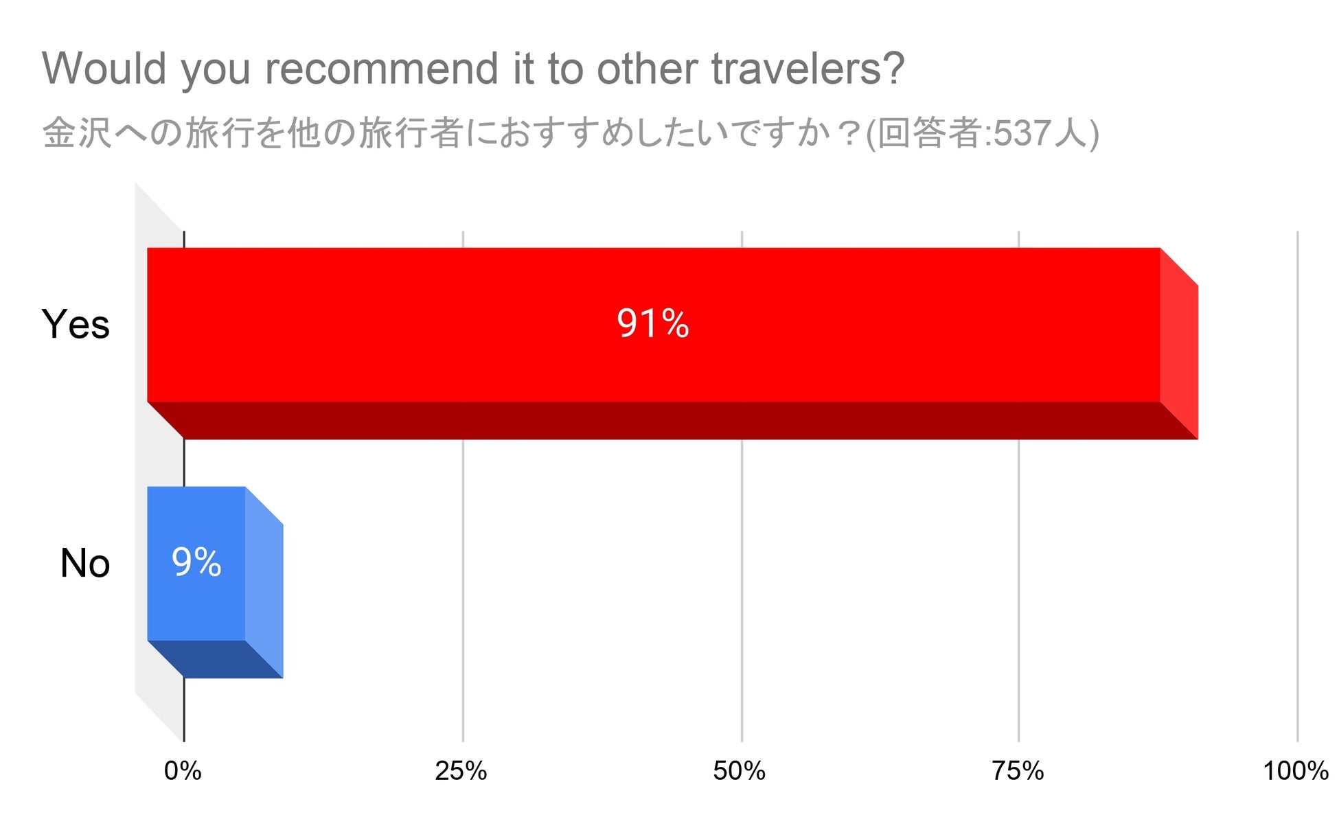 さらに、「金沢への旅行を他の旅行者におすすめしたいですか?」と質問しました。結果は以下の通りです。