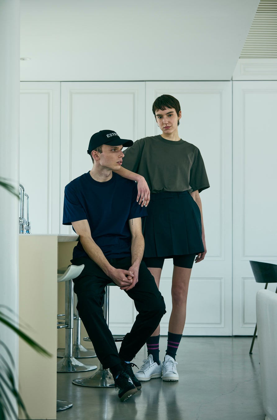 従来のゴルフウェアにはない、モード感とストリート感を融合させたミニマルなデザインが特徴で、ユニセックスに展開しています。