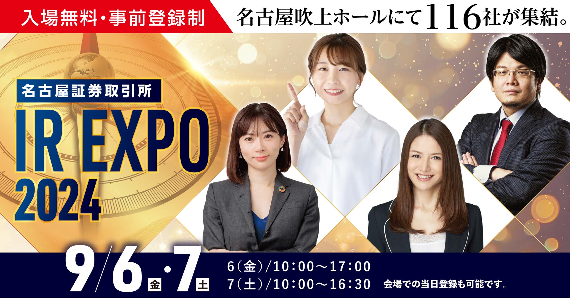 【国内最大級のIRイベント】「名証IR EXPO2024」が9/6(金)・7(土)に名古屋で開催!上場企業等116社が集結、著名講師による講演会やマネーセミナーも開催
