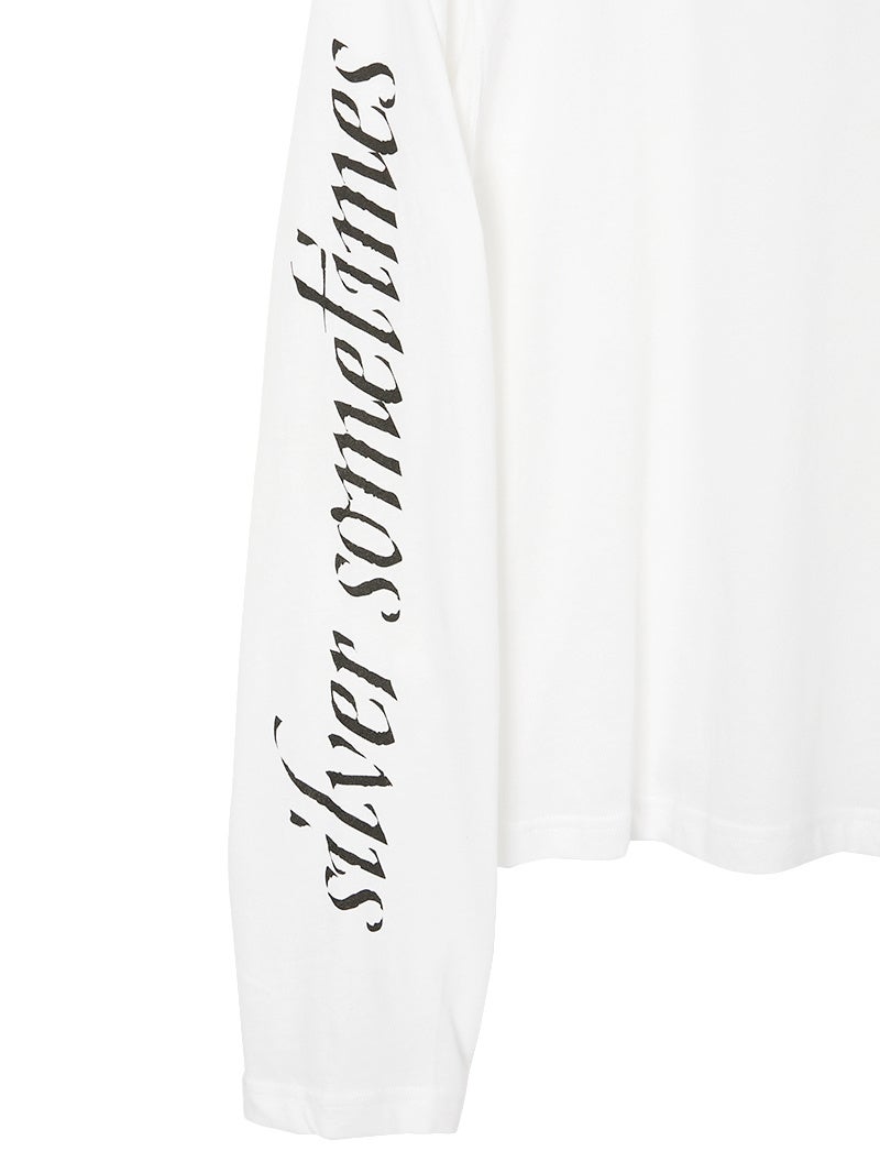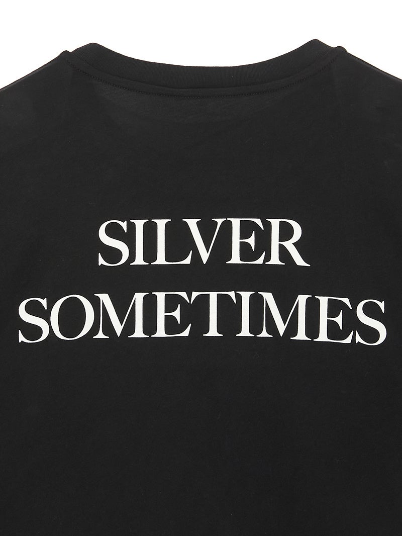 「SILVER SOMETIMES」のロゴを、袖にプリントの白いTシャツと、バックプリントの黒Tシャツが登場します。