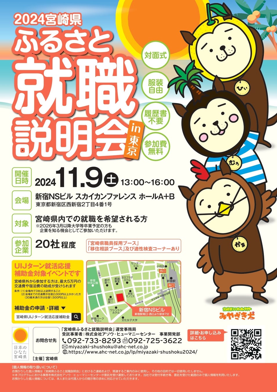 また出展企業は宮崎県内の産業重点分野を中心に、宮崎県への就職を促進することを目的としている。対象となる求職者はUIJターン希望や転職希望などの県外在住の一般求職者だけでなく、新規学卒予定者の参加も可能となっている。