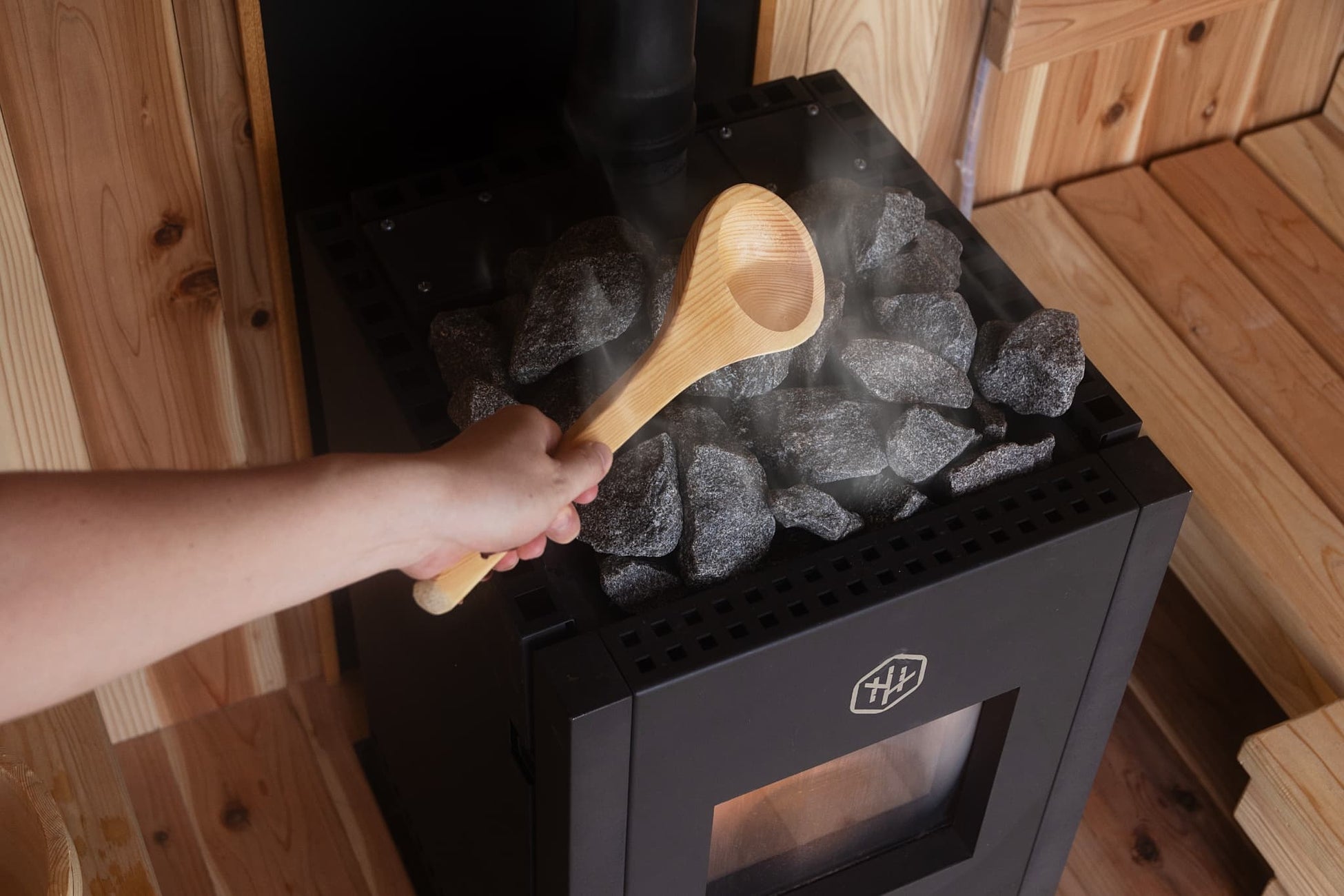 これまでサウナの熱源は薪または電気が主流でした。しかし、薪は乾燥に数年間かかったり、湿気を避けて保管することが難しく、その形状から効率的な運搬も難しいという課題がありました。更に、薪をくべる際に火傷や一酸化中毒の危険があるため、グランピング施設など薪ストーブが設置されている施設ではスタッフが1-2時間毎に訪問して燃料供給や灰の処理をする必要がありました。