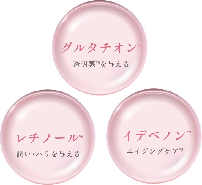 3種のリポソーム配合で成分が肌の隅々まで深く浸透*²し、内側から輝く光潤肌を実現。