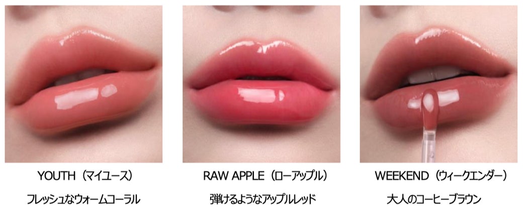とろみのあるジェルが重なり、厚みのあるぽってりツヤ唇に仕上がります。