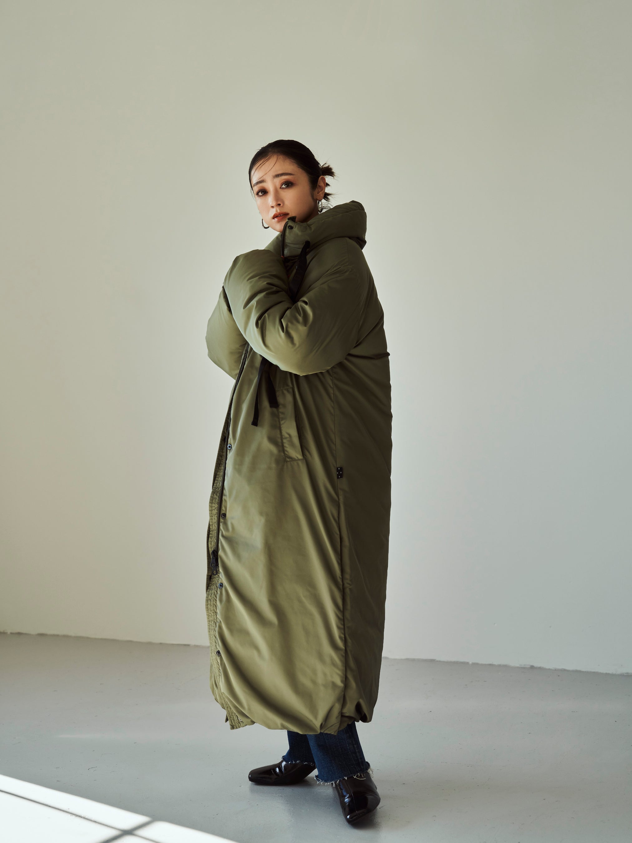「上品にカッコよく着こなせるよう、ダウンではなかなか見かけないフルレングスに仕上げました。フルレングスでありながら動きやすさを考慮しサイドにスリットを入れるなど、防寒性はもちろん機能性とデザイン性を両立させたこだわりの一枚に仕上げました。」
