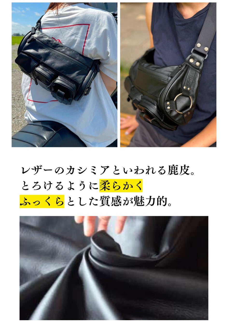 山梨県でジビエ事業を手掛ける株式会社イェーガーから天然鹿皮を使用したバイクボディバッグがグリーンファンディングにて1/24発売開始