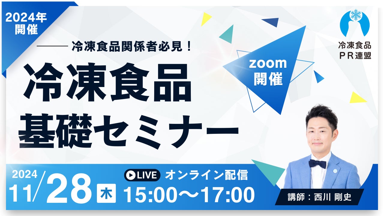 冷凍食品PR連盟株式会社(東京都港区、連盟会長:西川剛史)は冷凍食品の啓蒙活動、冷凍食品業界の活性化を目的に「冷凍食品基礎セミナー(初級編)」をオンラインにて開催いたします。冷凍食品の基礎、科学的理論、歴史的背景、市場や近年のトレンドまで、冷凍食品に関して幅広く学ぶことができ、冷凍食品関係者が最初に知るべき基礎知識を短時間(2h)で学ぶことが可能です。冷凍に関連した企業様の担当者教育にご活用ください。