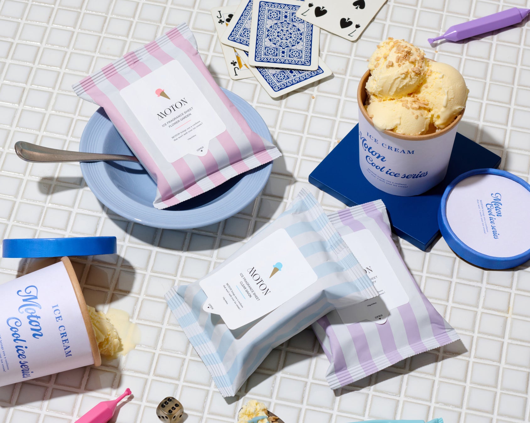 MOTON初となる冷感アイテムが登場!大判のシートでさっと拭くだけでお肌をさらさらに整えて冷感が持続する「アイスフレグランスシート」、いつでもシュッとボディに吹きかけて爽快感を与えてくれる「アイスミスト」、肌に密着してしっかりクールダウンする「アイスジェル」、爽快レベルシリーズ最高峰を誇る「アイスローラー」が登場し、いつでも手軽な冷感ケアを叶えます。