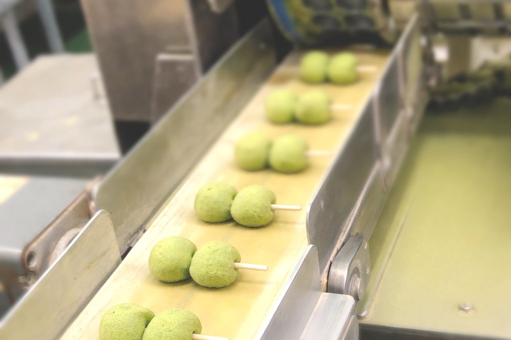 伝統ある京都の抹茶スイーツをテーマに、お団子の在り方から考えました。大福のように大きすぎては一口で食べられず、抹茶とみるくの相乗効果は得られません。しかし、この一玉だと少し物足りない。そこで2玉を1串にまとめ、一口サイズであり且つ満足感を得られるよう工夫しました。