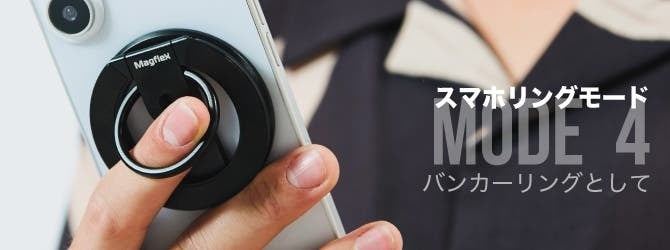 スマホリングから展開し、シチュエーションに合わせてスタンドにマグネットホルダーに、自由自在に変化する超フレキシブルスマホアクセサリー、それが【Maglex】です。