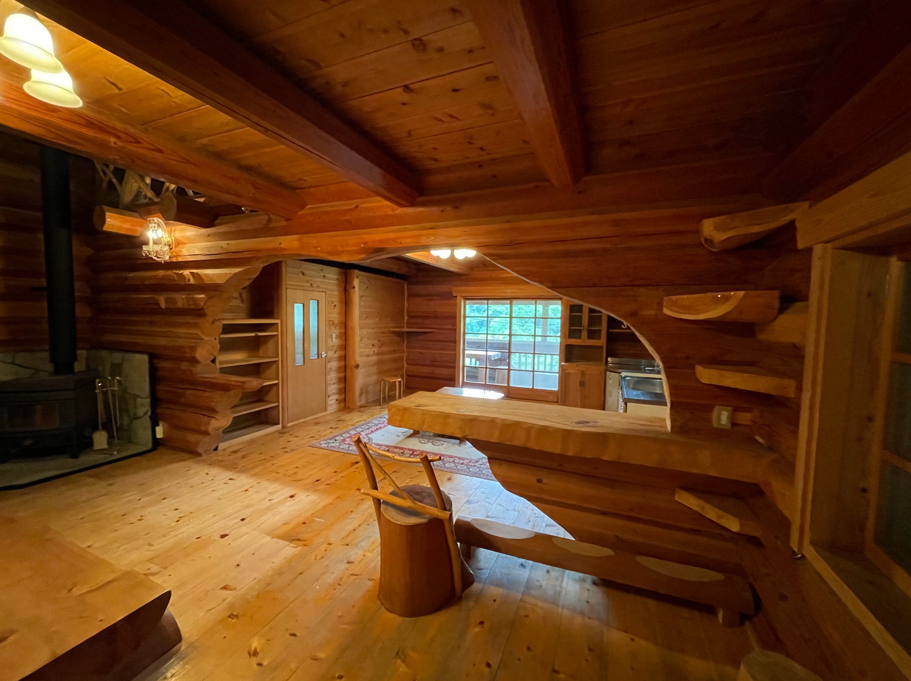 宿泊棟は、地元和歌山のスギの木をふんだんに使用した築27年のオールウッドログハウス。建物が本来持っていた自然との調和をそのまま活かしながら、モダンデザインのログハウスにリフォーム予定。