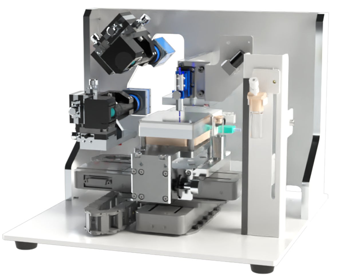 その特徴は、ガラス製のシングルノズルヘッド GlassJet を搭載することで、DMFやNMPなどのアタック性が強い液にも対応可能であることです。また、ノズルの目詰まり防止機能も搭載されているため、ペロブスカイト層形成に必須の低湿度下での薄膜形成においても目詰まりせず、安定した薄膜形成が可能となりました。