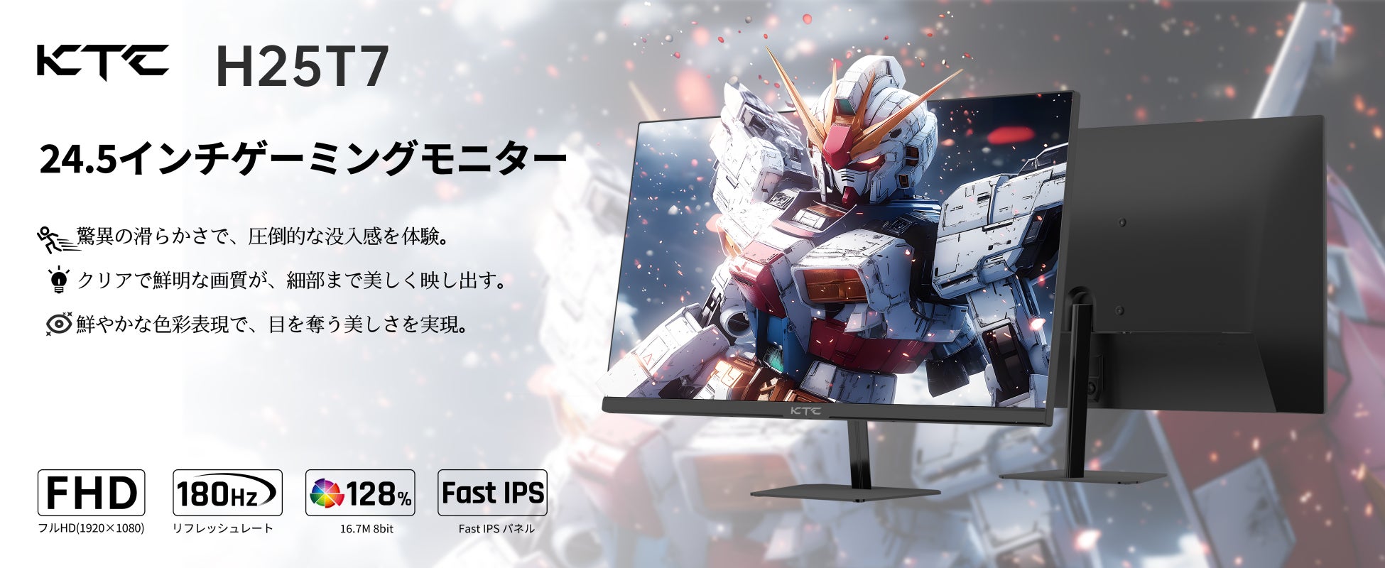 KTCが提供する新しい24.5インチゲーミングモニター「H25T7」は、最高のパフォーマンスを求めるゲーマーに最適な一台です。革新的な技術とユーザー目線に立ったデザインが、あなたのゲーム体験を圧倒的に向上させます。