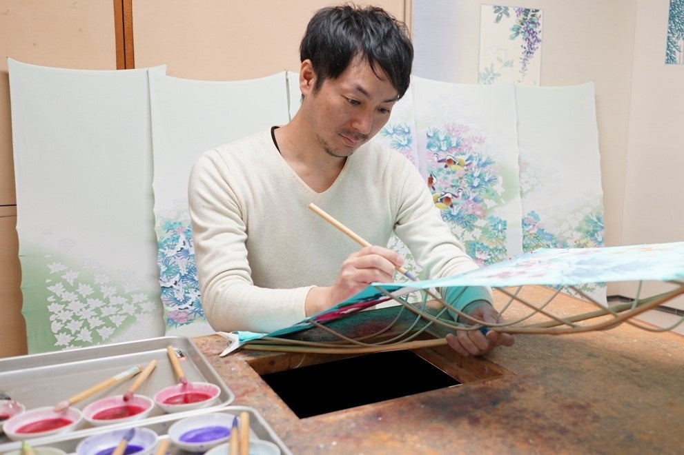 デザインは、加賀友禅の伝統×モダンを目指して制作。伝統色である加賀五彩(藍、臙脂、黄土、