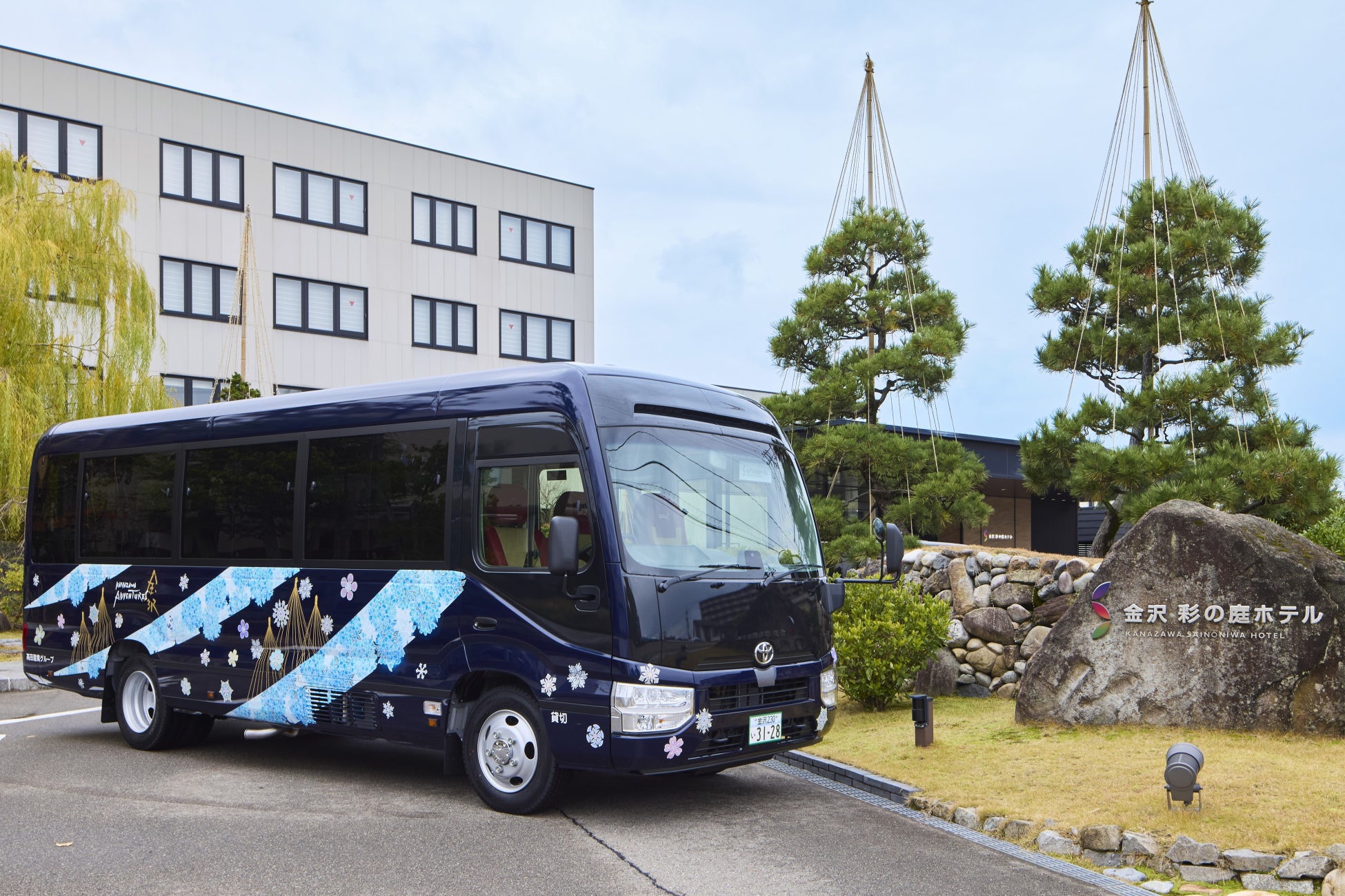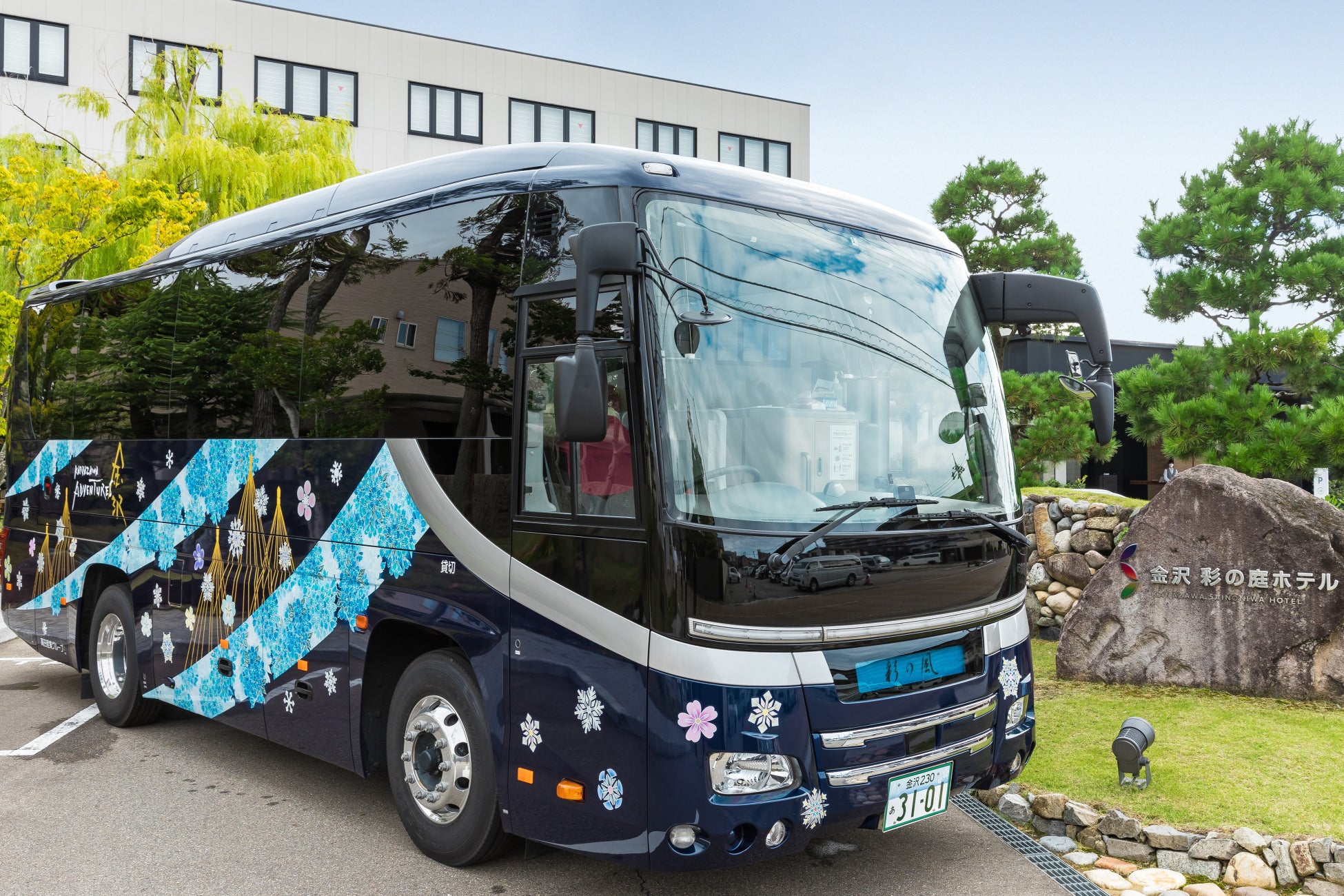 グジュアリーバスの外観は加賀友禅作家である毎田仁嗣氏がデザイン。