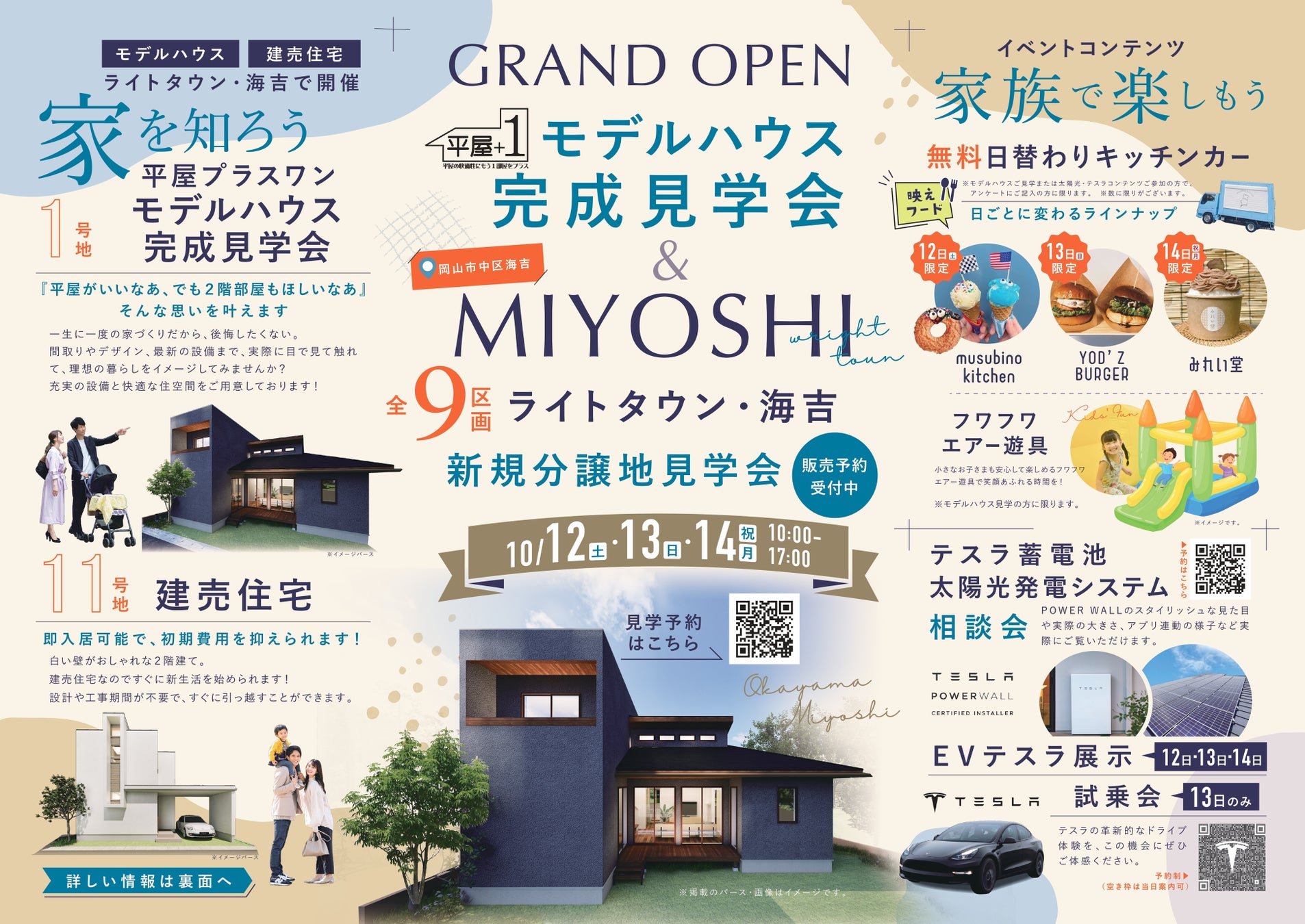 【10/12~14】茂山組初の分譲地「ライトタウン・海吉」平屋プラスワンモデルハウス完成イベント開催!(岡山市中区海吉)