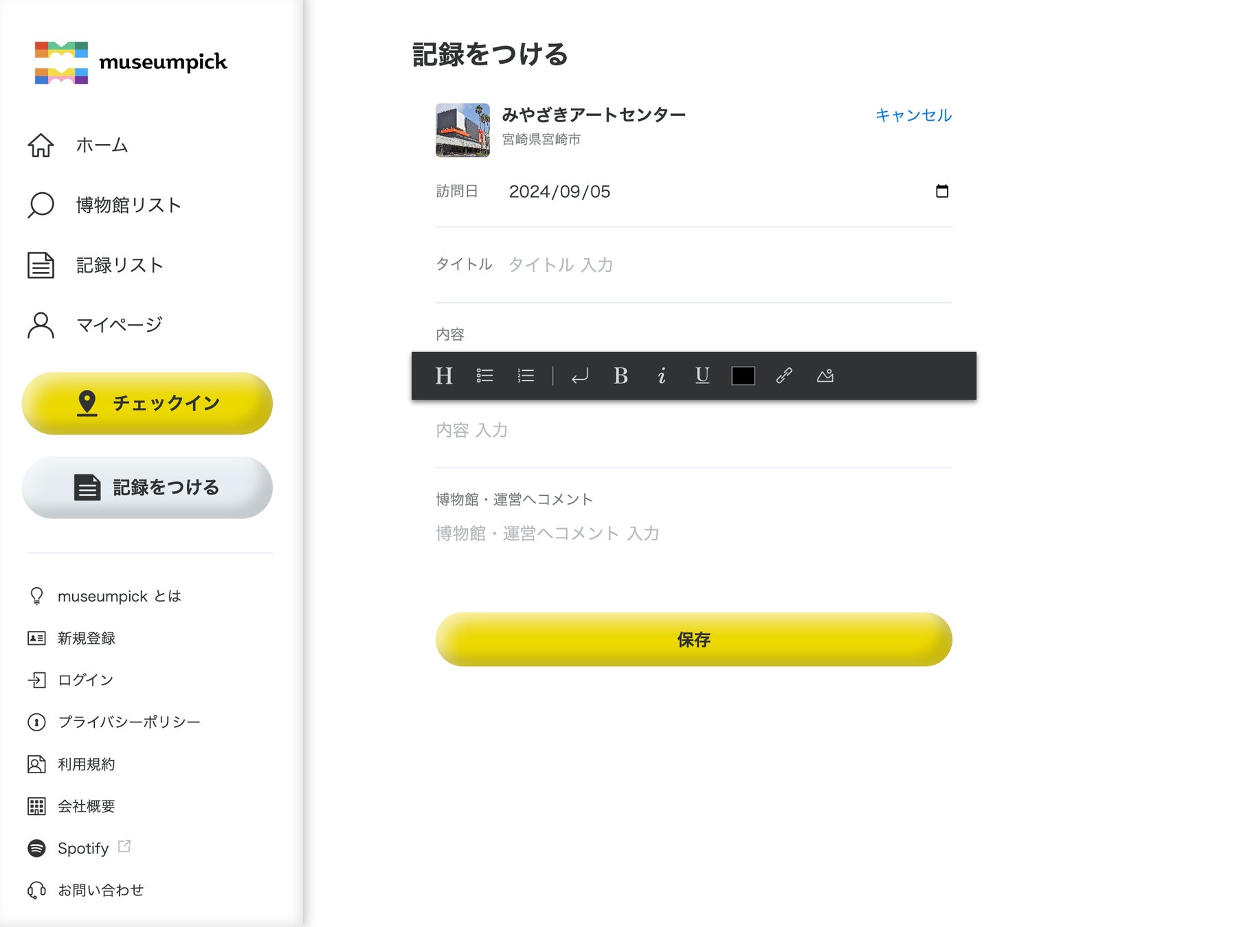 博物館の訪問記録サービス「museumpick」運営、コンサルティング事業、他 |