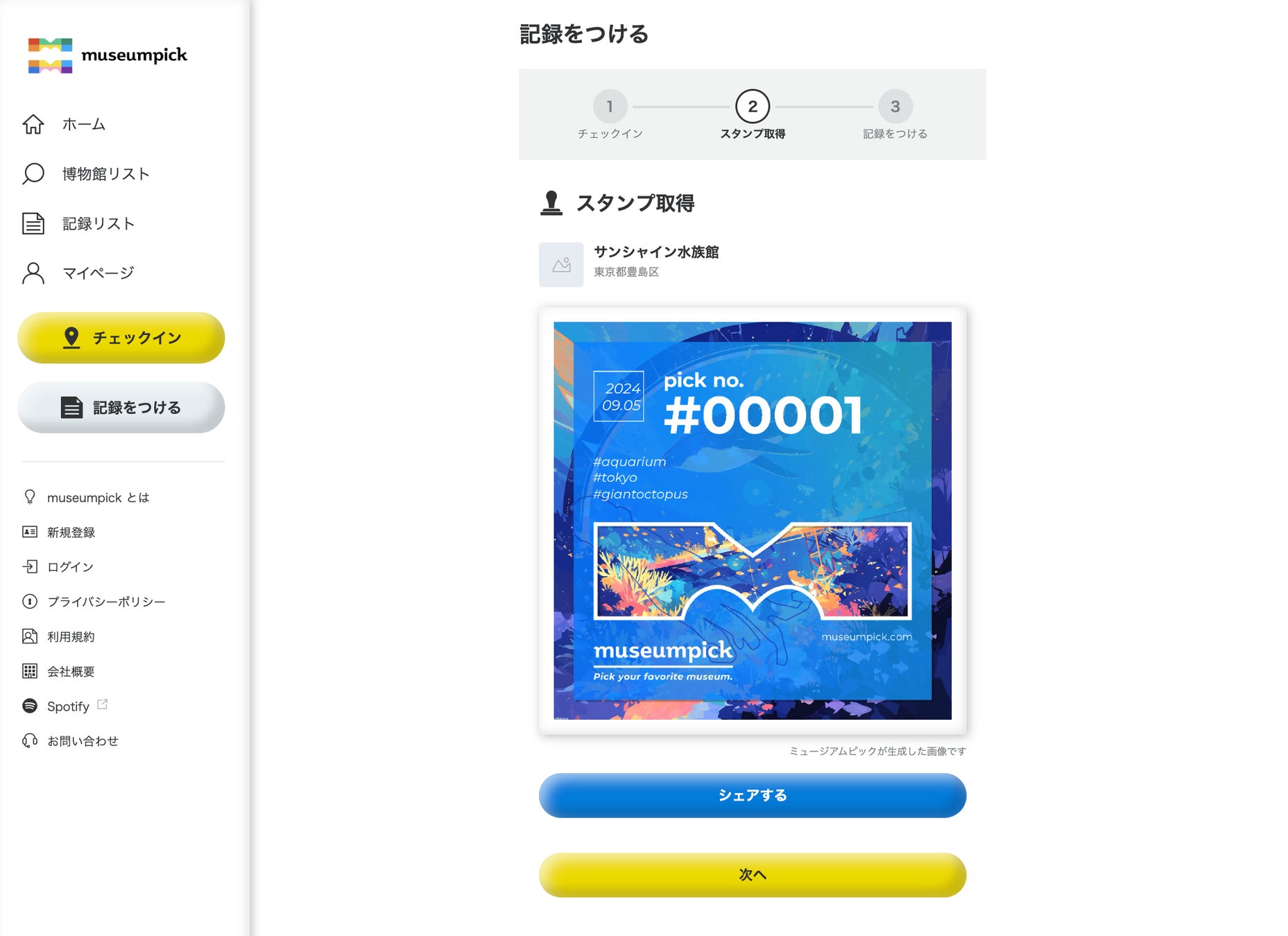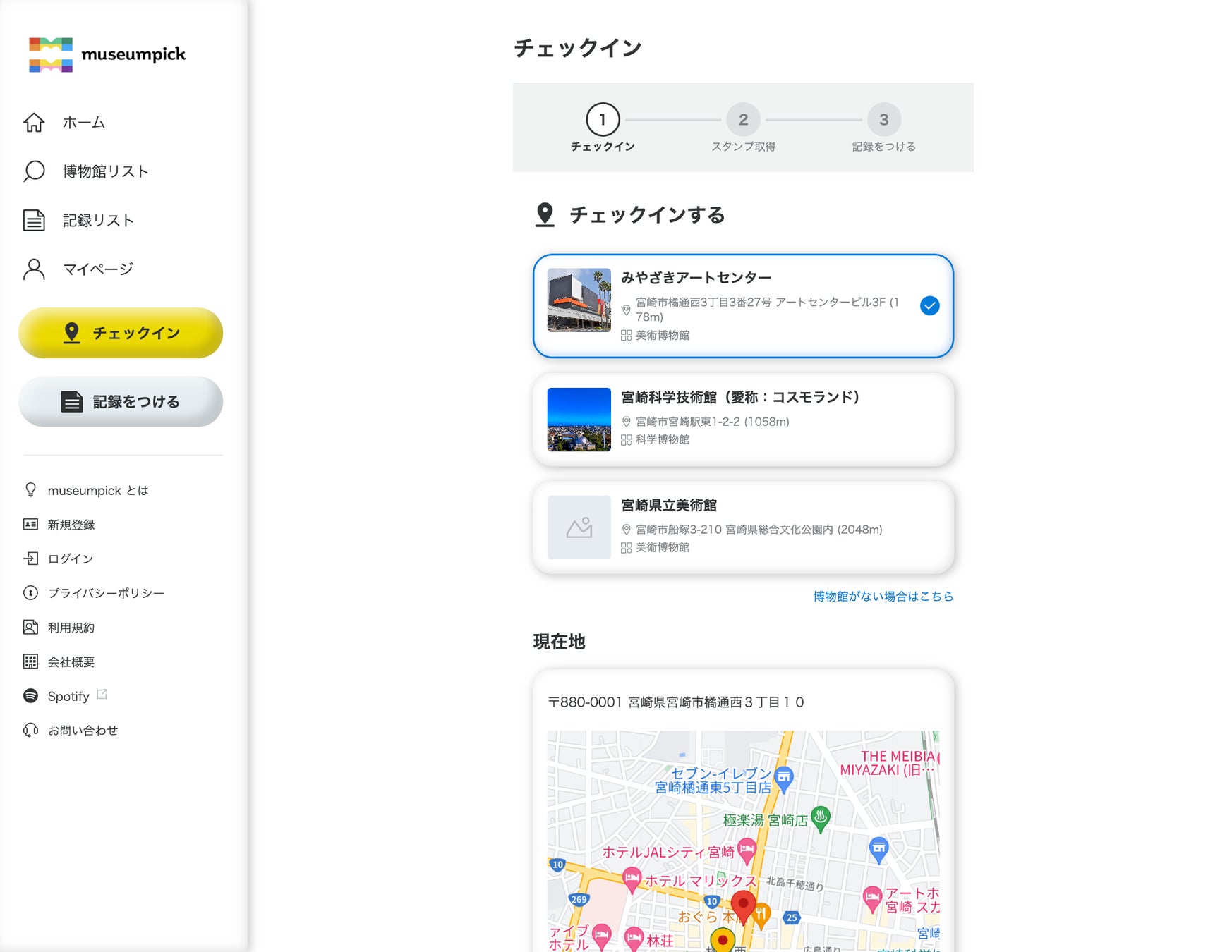 株式会社ミュージアムピック(本社:宮崎県宮崎市、代表取締役:平林 聡一朗)は、webサービス「museumpick」を開始します。このサービスは、GPSを使って全国約5,000箇所の博物館施設でチェックインをすることで訪問記録やスタンプを獲得することができます。