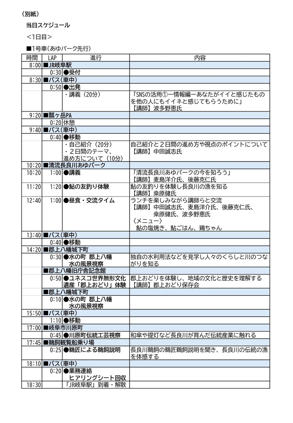 ※スケジュール詳細については、(別紙)当日スケジュールのとおりです。