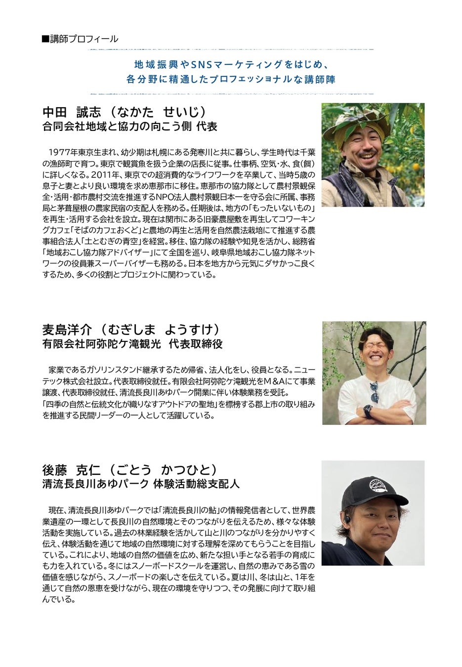 ※講師詳細については、(別紙)講師プロフィールのとおりです。