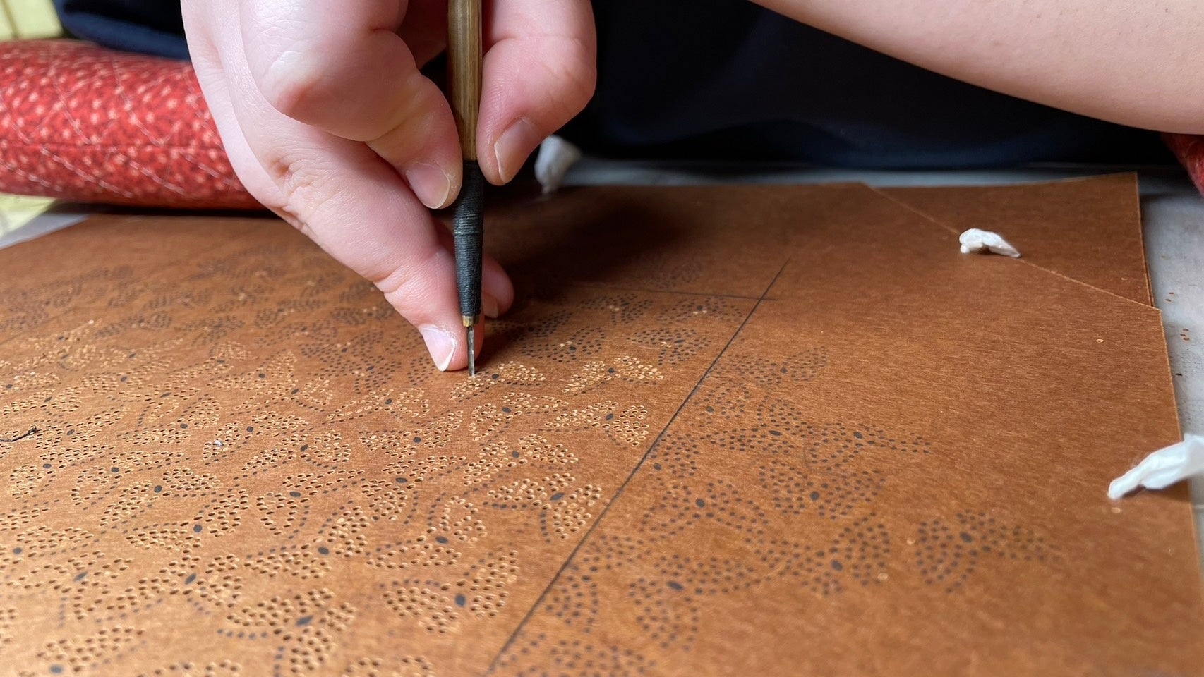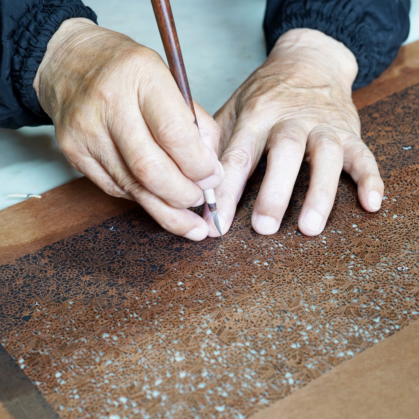 伊勢型紙は、着物や浴衣に文様を染めるために使われてきた精緻な和紙の型。職人が一彫り一彫り魂を込めて彫刻しています。
