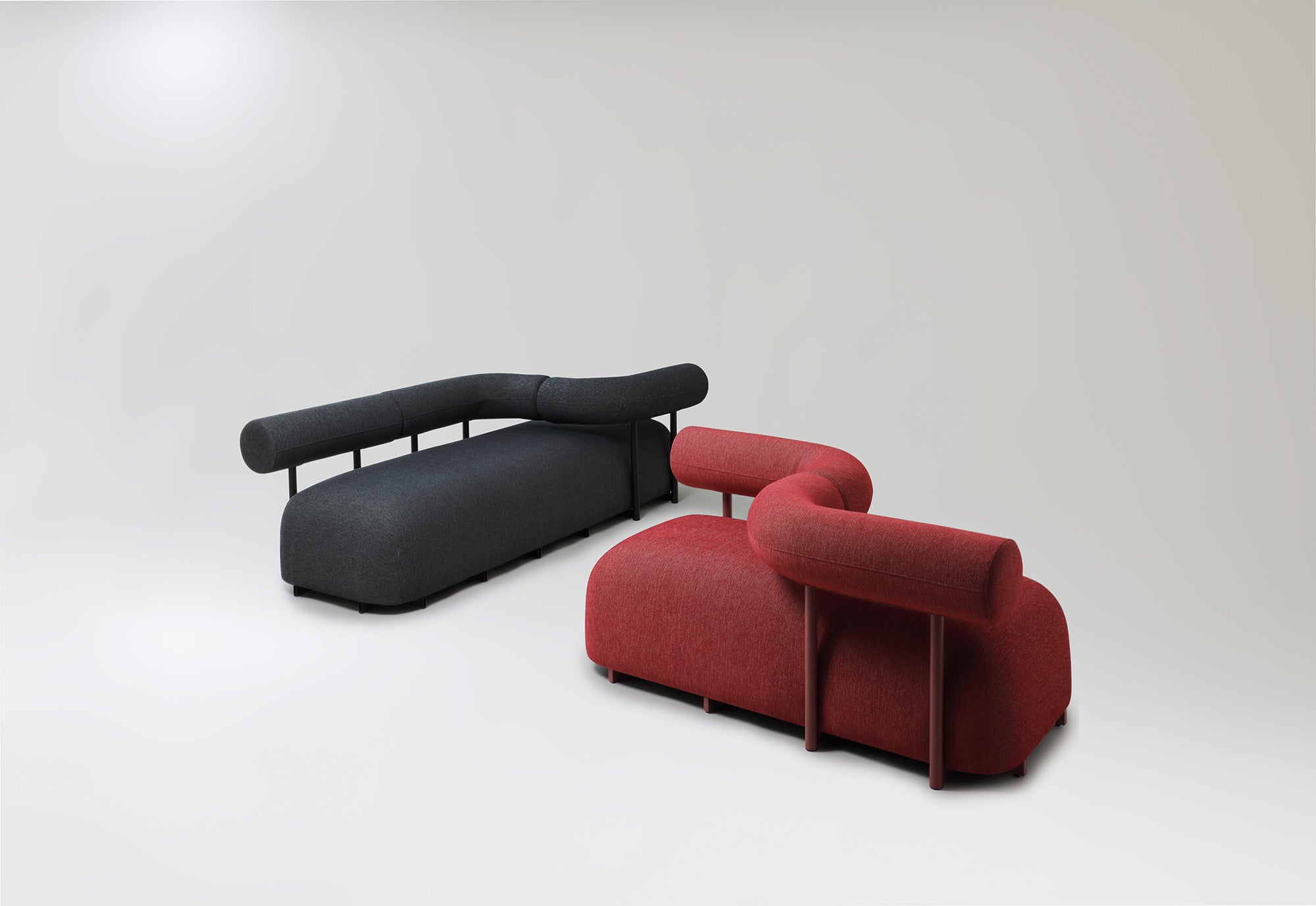 パーツのモジュール化により多彩な組み合わせが可能。やわらかな曲線と丸い背で作られた現代的なフォルムで空間に印象的な個性をもたらすソファシリーズ。3月17日より受注開始。