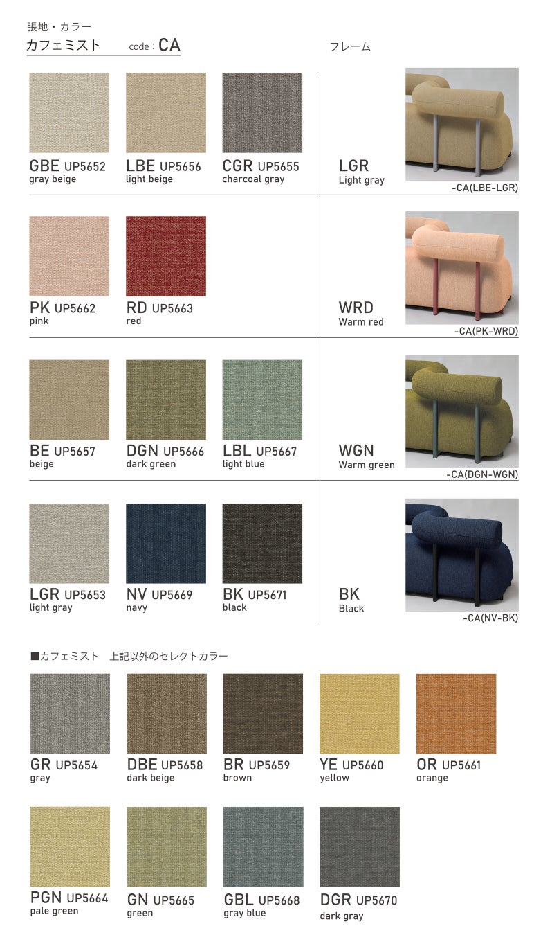 ファブリックは『カフェミスト』20色と『ニトラAC』16色、合計36種類からお選びいただけます