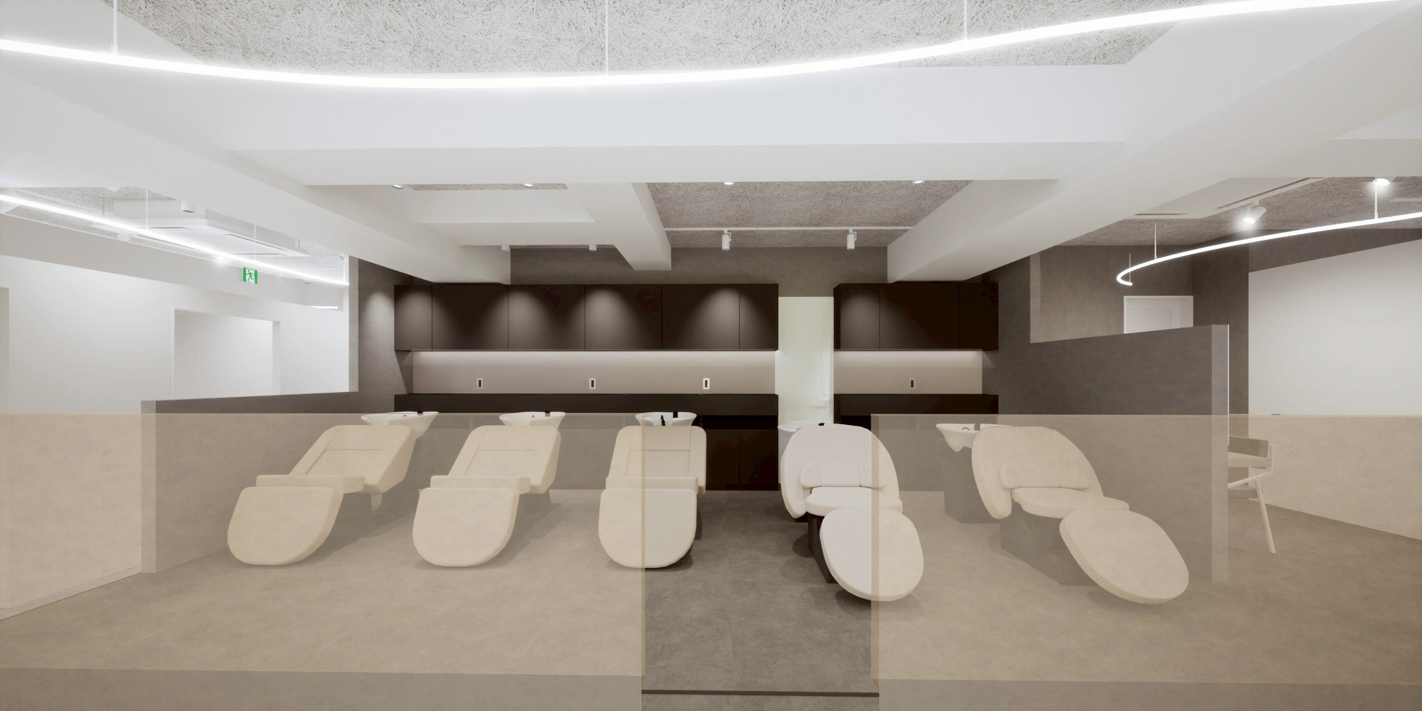 同店は白とステンレスを基調としたミニマルな内装に、ネオンをアクセントとして使用した先進性のあるデザインが特徴で、表参道や周辺エリアで活躍する美容師の皆様に活躍の場をご提供いたします。