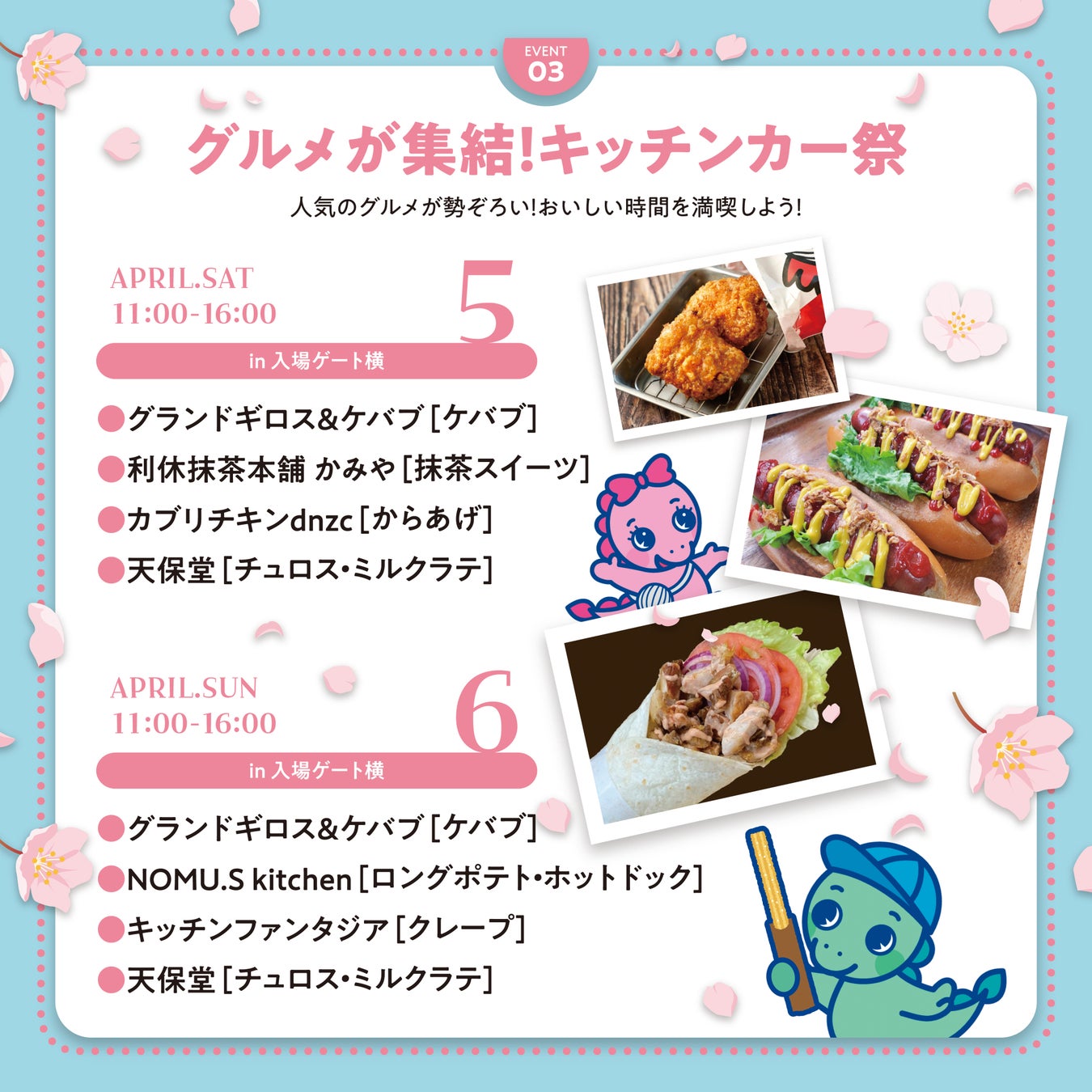 キッチンカー祭 → 4月5日(土) 〜 4月6日(日)