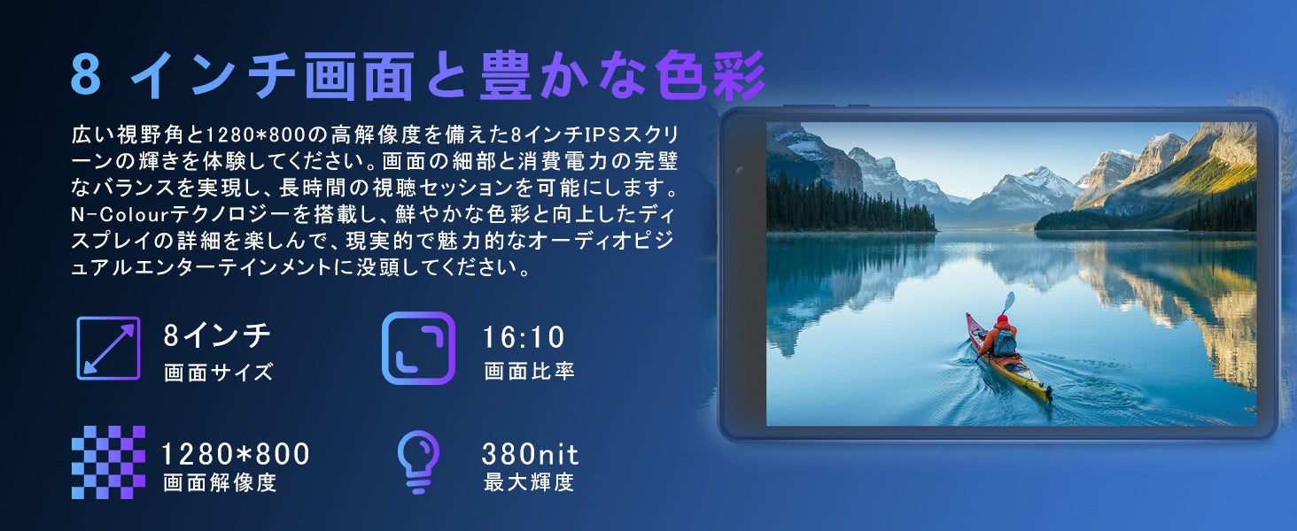 Npad Miniは、8インチディスプレイと8コアプロセッサ「A523」を搭載し、マルチタスク処理が可能でスムーズな使用体験を提供します。