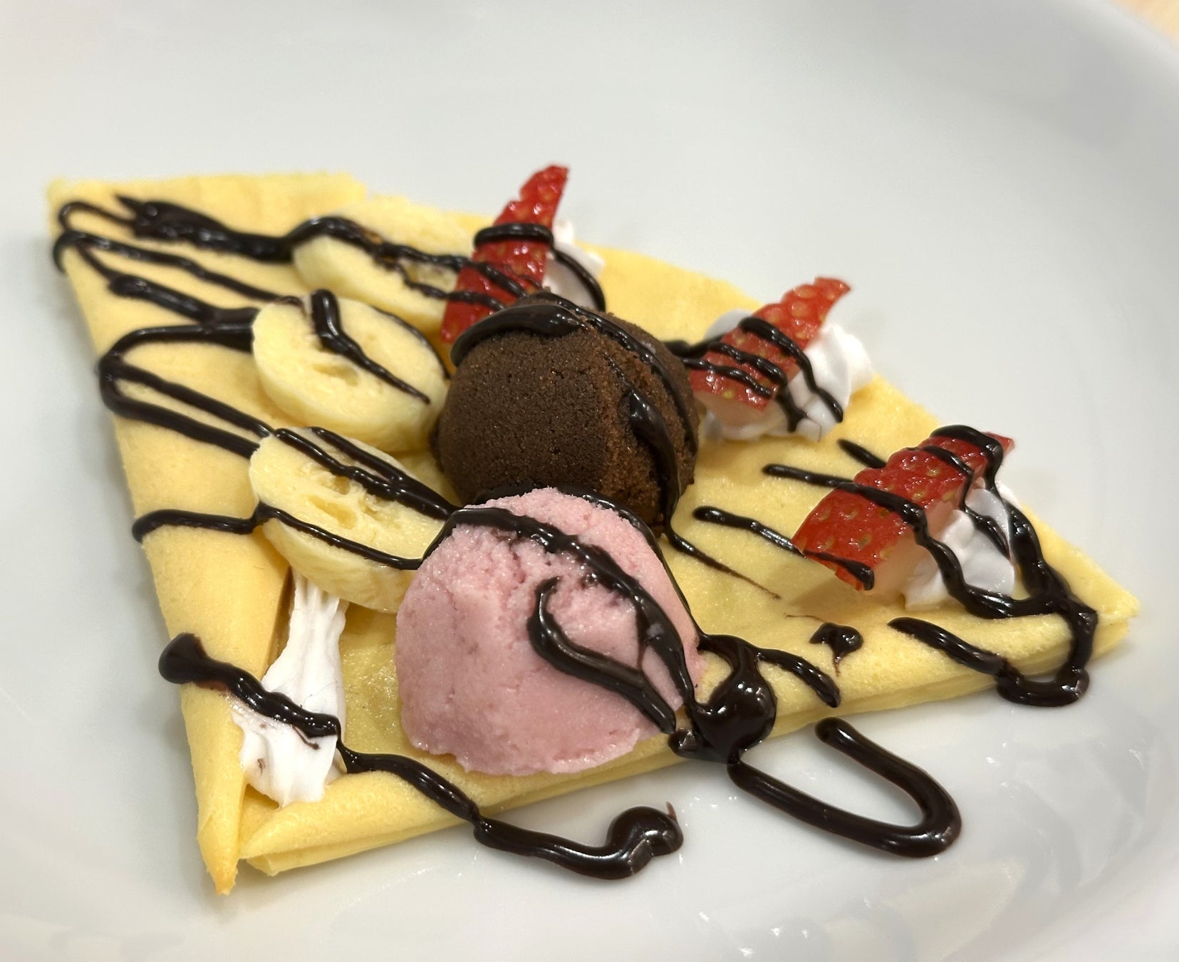 そこで体験開発チームと技術監修いただいている食品サンプルメーカーがメニュー開発を急ピッチで進め、この度2024年12月7日よりデザートメニュー「クレープ」と「ジェリーパフェ」を提供開始しました!
