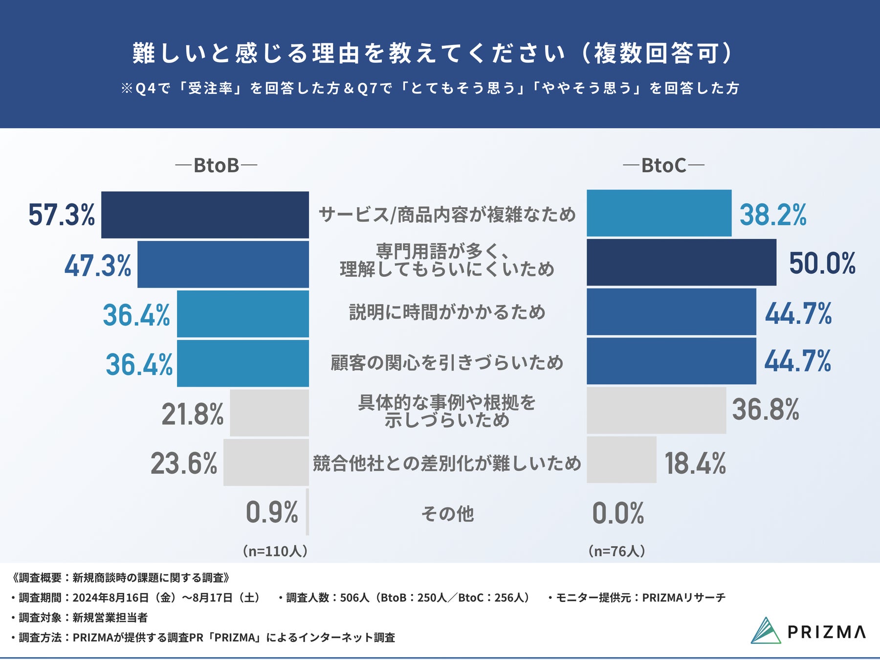 その理由としては「サービス/商品内容が複雑」「専門用語が多く、理解してもらいにくい」が課題として見受けられます。
